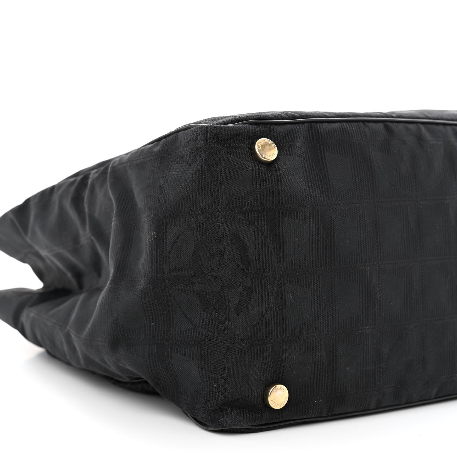 This is an authentic CHANEL Nylon Medium Travel Tote in Black. This stunning tote is beautifully created of fine black nylon with squared and Chanel CC impressions. The bag features black cowhide leather trim including top handles and piping. The top is open to a black nylon interior with zipper pockets.Follow this item for alerts. Chanel is a registered trademark of Chanel. FASHIONPHILE is not affiliated with Chanel.