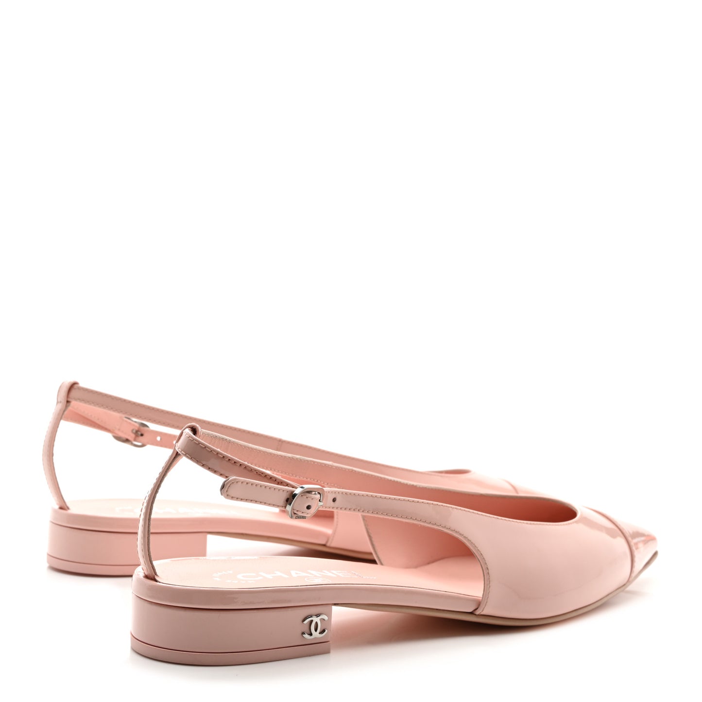 Chanel/ Bags/ Accessories /Chanel Patent Calfskin Cap Toe Slingback Flats 38.5 Light Pink