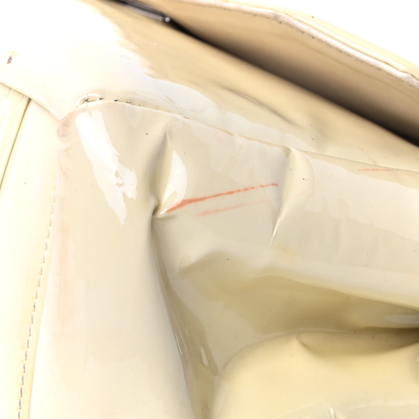 Patent Calfskin Mademoiselle Lock Bijoux Chain Flap Beige