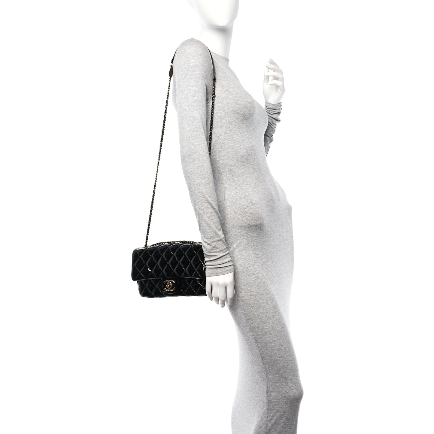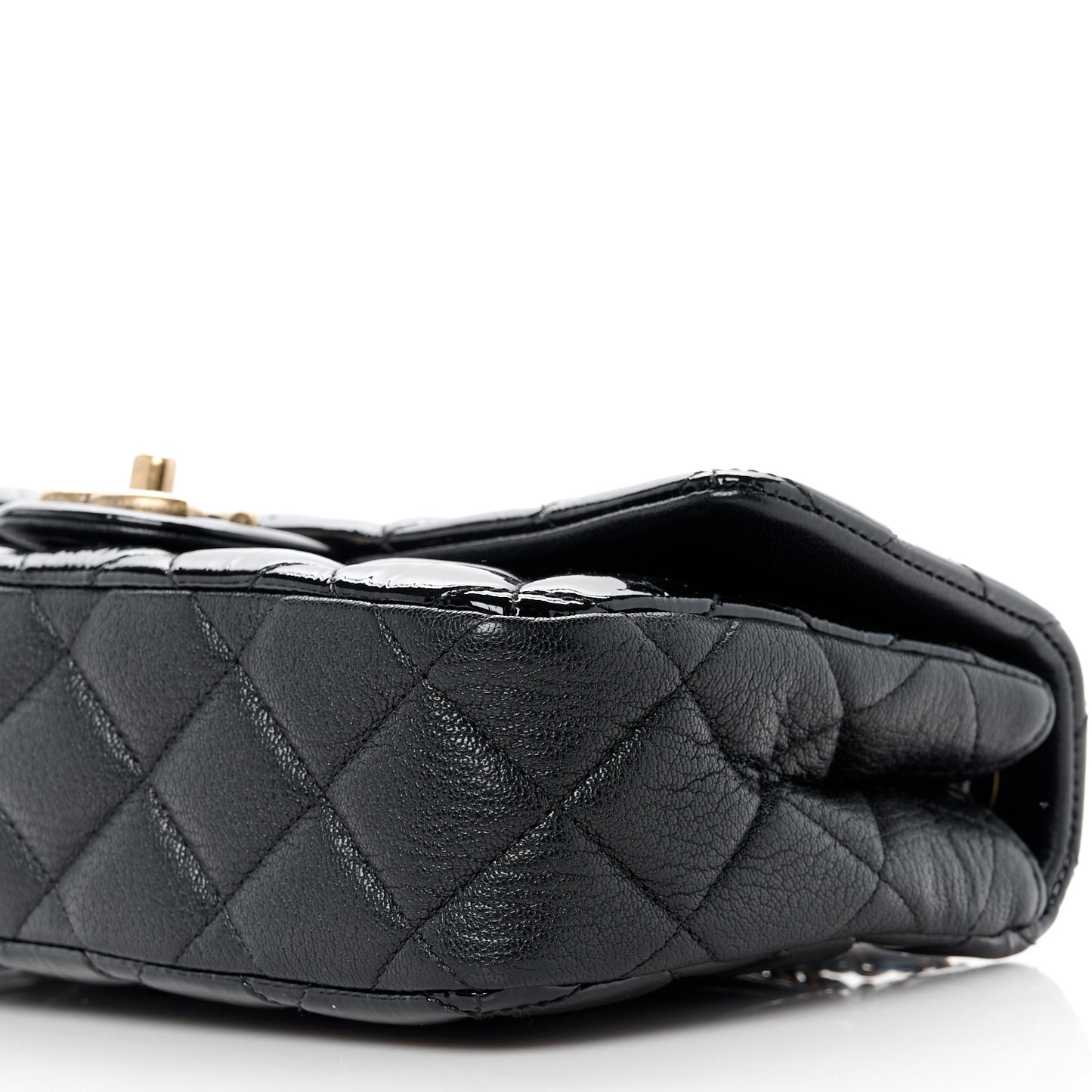 Patent Goatskin Quilted Medium CC Eyelet Flap Black