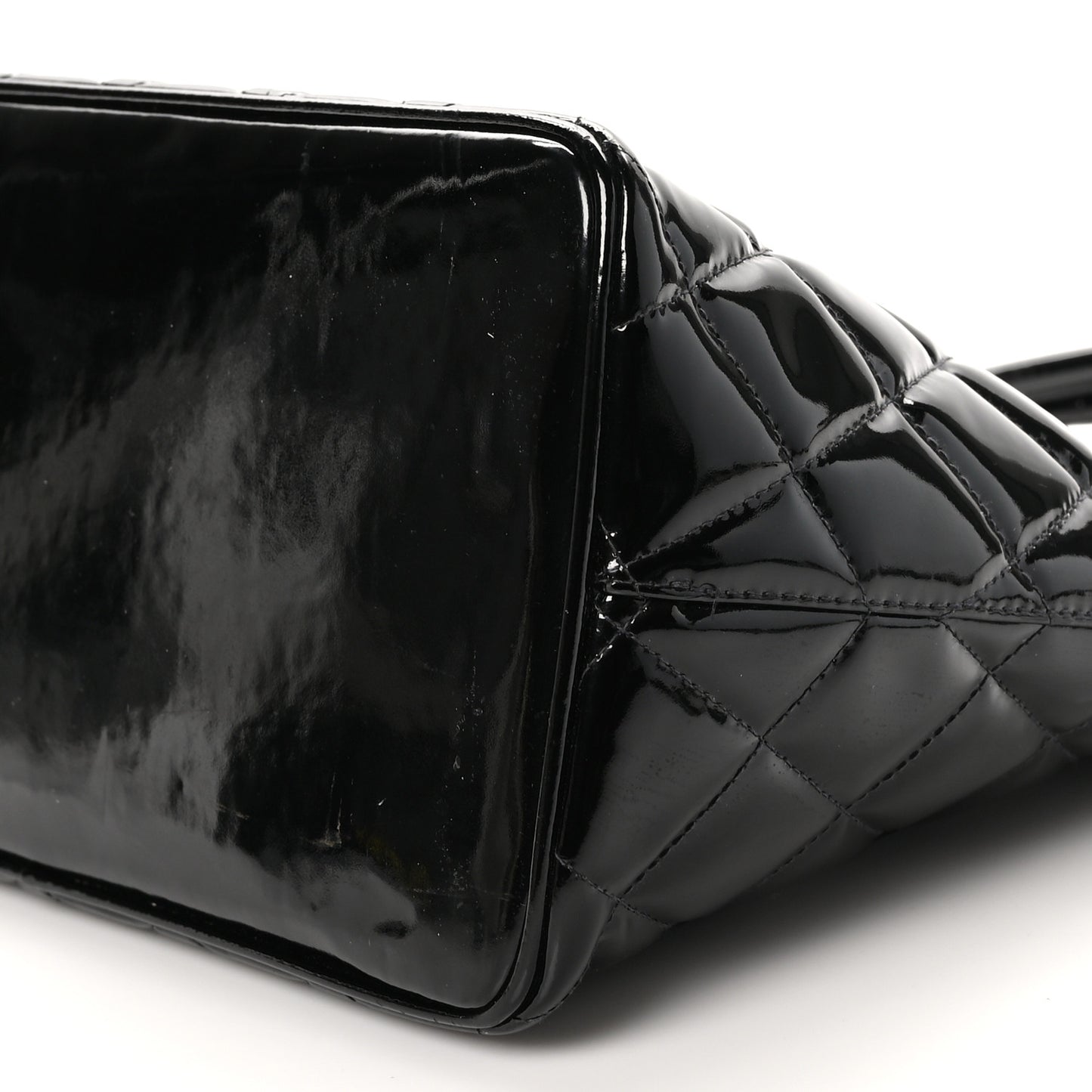 This is an authentic CHANEL Patent Medallion Tote in Black. This stunning tote is crafted of diamond quilted black patent leather. It features thin rolled leather top handles, a front Chanel CC patch logo, a rear flat pocket, and a top Chanel CC gold medallion zipper pull. The shoulder bag opens to a smooth leather interior with a zipper and patch pockets.Follow this item for alerts. Chanel is a registered trademark of Chanel. FASHIONPHILE is not affiliated with Chanel.
