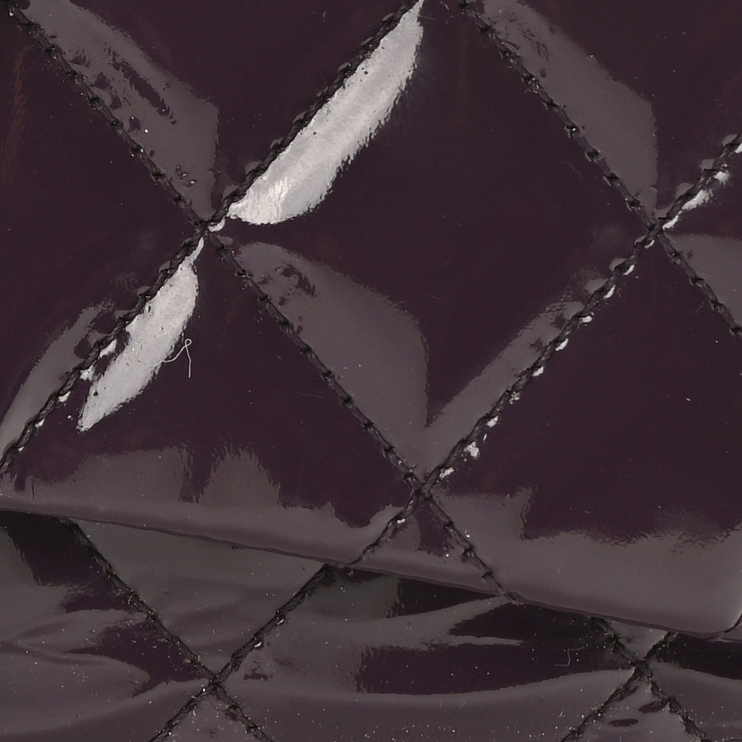 This is an authentic CHANEL Patent Quilted Jumbo Single Flap in Dark Purple. This chic shoulder bag is crafted of purple diamond quilted patent leather. The bag features silver chain link shoulder straps threaded with purple patent leather and a silver Chanel CC turn lock for the frontal flap. This opens to a matte leather interior with zipper and flat pockets.Follow this item for alerts. Chanel is a registered trademark of Chanel. FASHIONPHILE is not affiliated with Chanel.