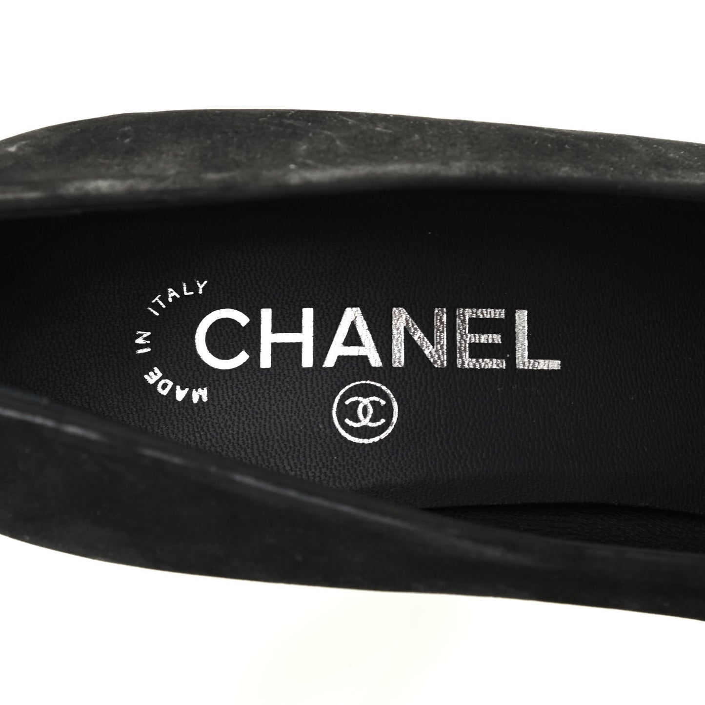 This is an authentic pair of CHANEL Patent Suede Calfskin Pearl Cap Toe Pumps size 40 in Black. These classic pumps are crafted of black suede. These feature a patent leather cap toe, and a 4.25 inch classic wrapped stiletto, and a silver heel tip embellished with a pearl.Follow this item for alerts. Chanel is a registered trademark of Chanel. FASHIONPHILE is not affiliated with Chanel.
