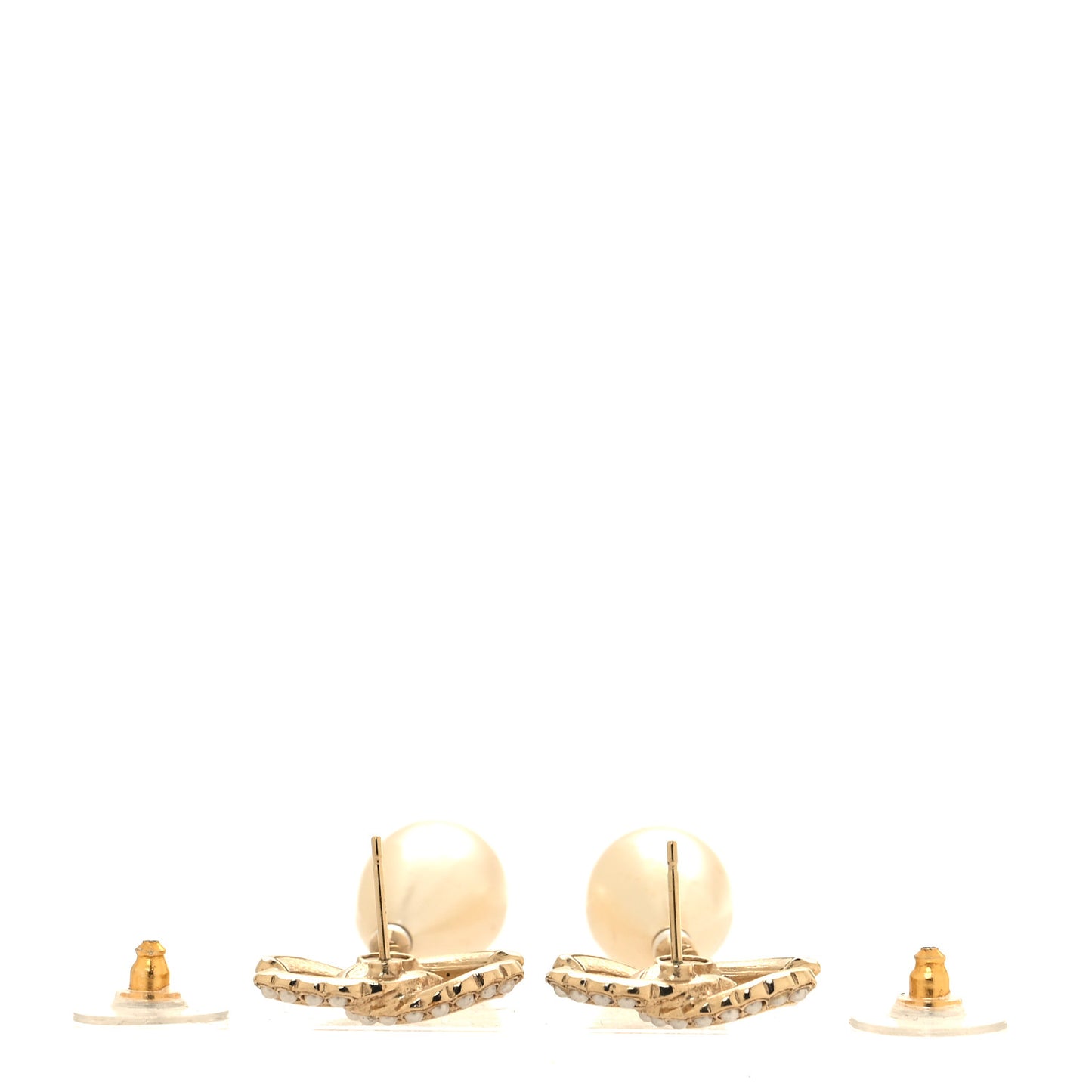 This is an authentic pair of CHANEL Pearl CC Drop Earrings in Gold and Pearly White. These stylish earrings feature a textured gold Chanel CC logo set with faux pearls.Follow this item for alerts. Chanel is a registered trademark of Chanel. FASHIONPHILE is not affiliated with Chanel.
