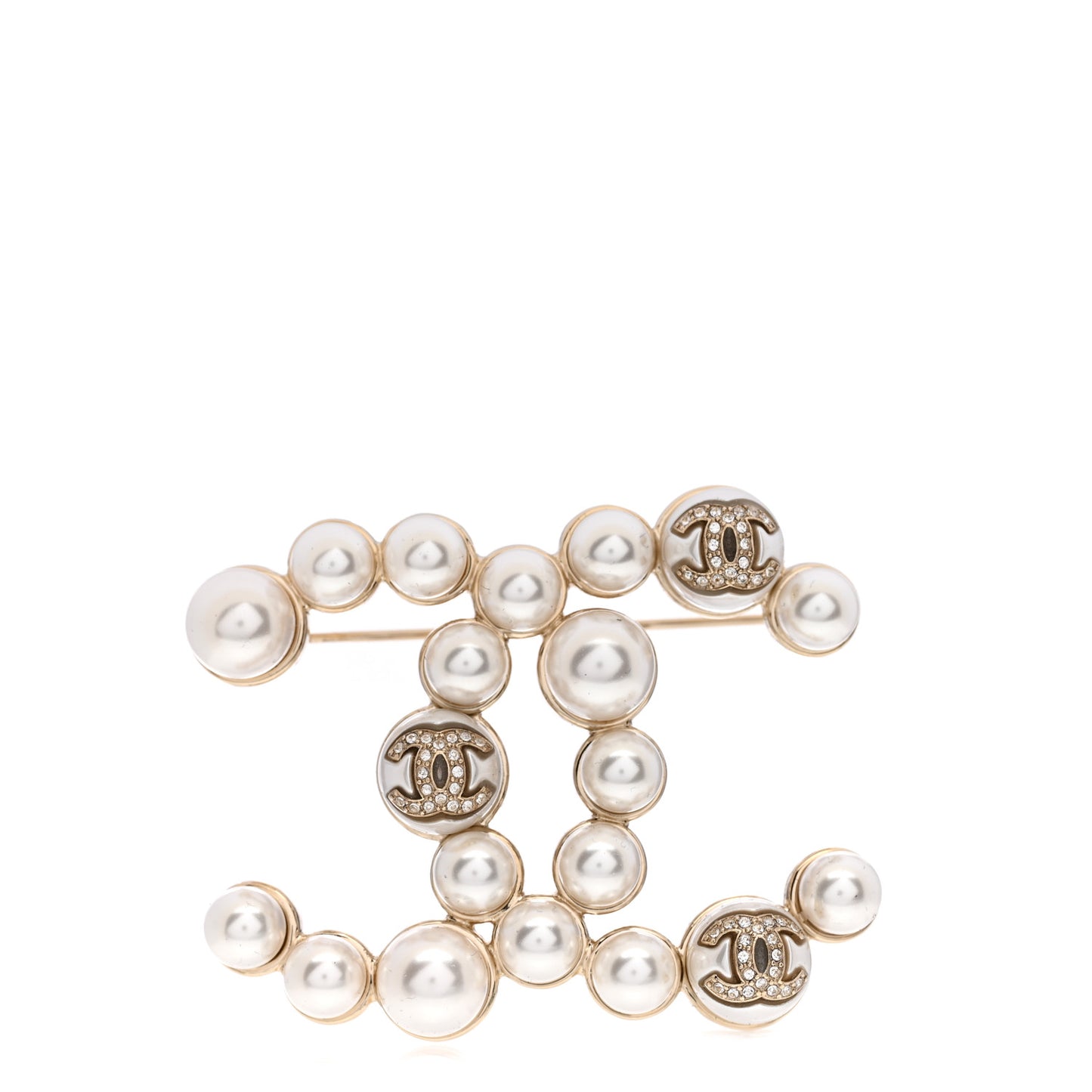 Chanel/ Accessories/ Pins & Brooches /Chanel Pearl Crystal CC Brooch Gold