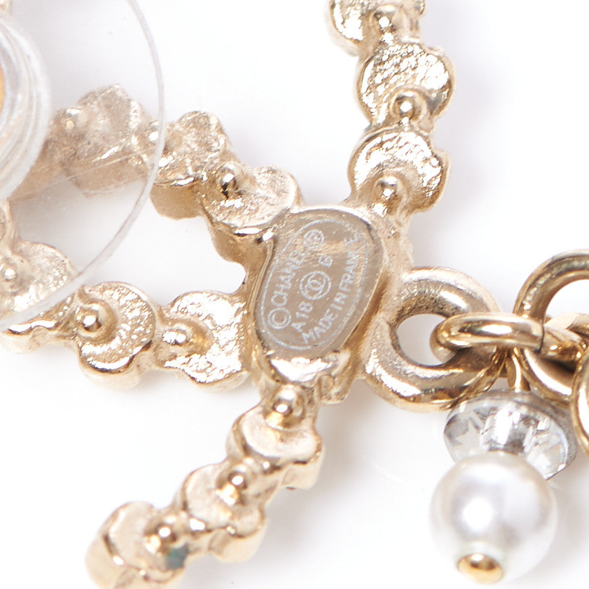 Pearl Crystal Lambskin Chain CC Dangle Earrings Gold