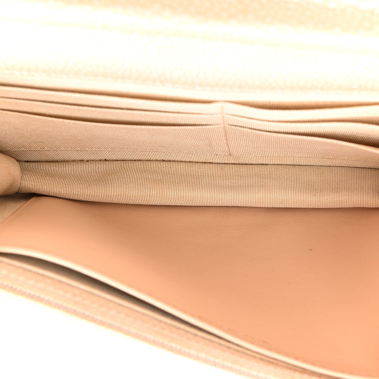 Pearly Caviar Quilted Wallet On Chain WOC Beige