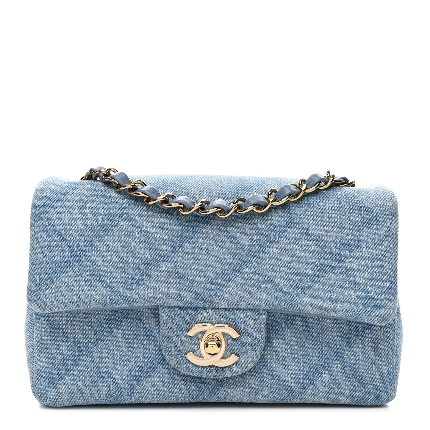 Chanel/ Bags/ Shoulder Bags /Chanel Printed Denim Quilted Mini Rectangular Flap Light Blue