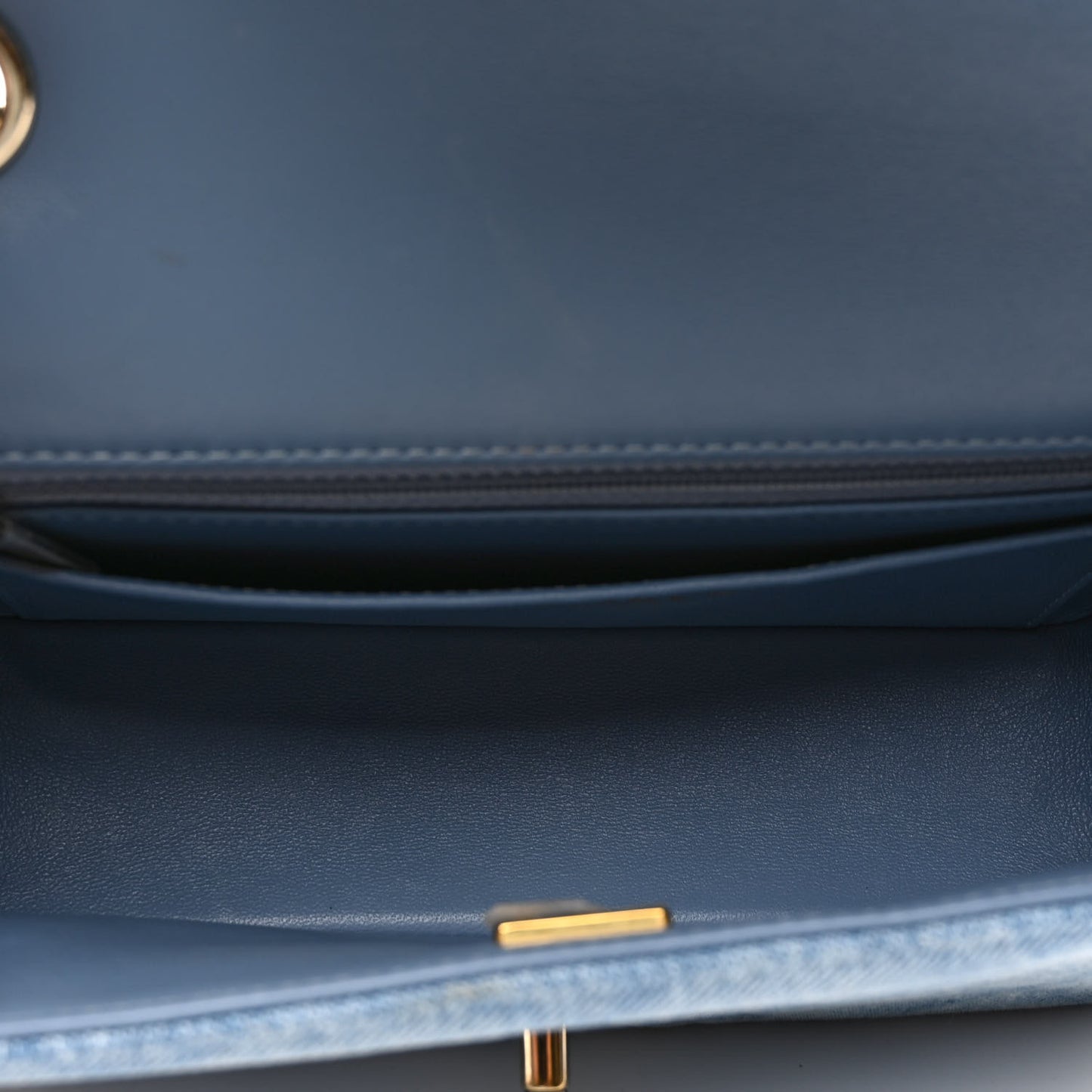 Printed Denim Quilted Mini Rectangular Flap Light Blue