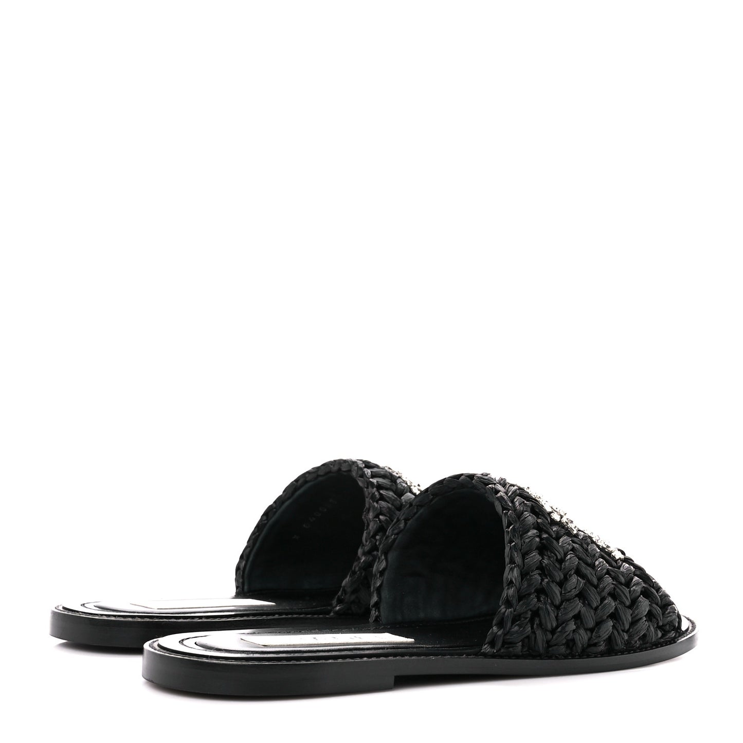 Raffia Crystal CC Mules Sandals 38.5 Black