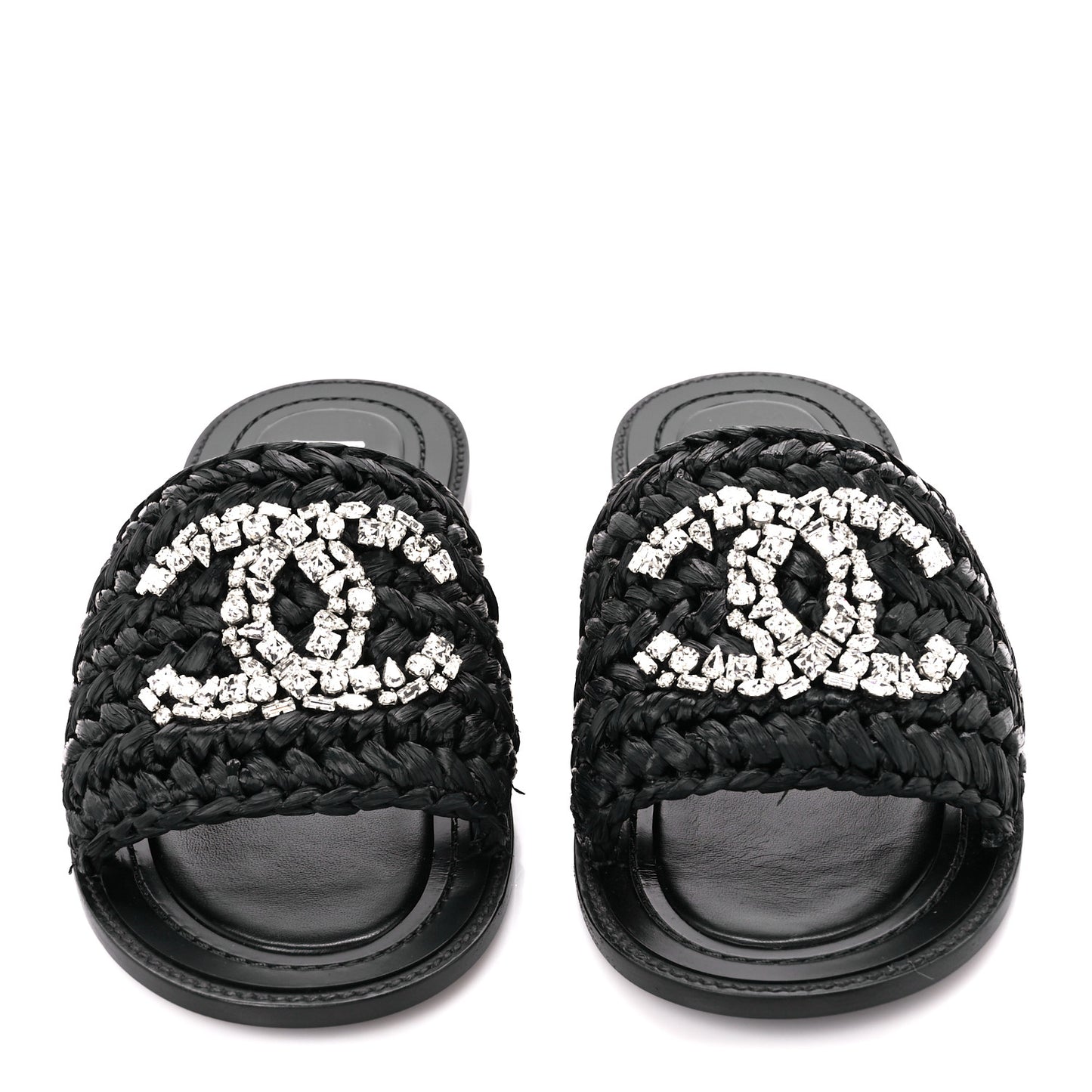 Chanel/ Accessories/ Shoes /Chanel Raffia Crystal CC Mules Sandals 38.5 Black