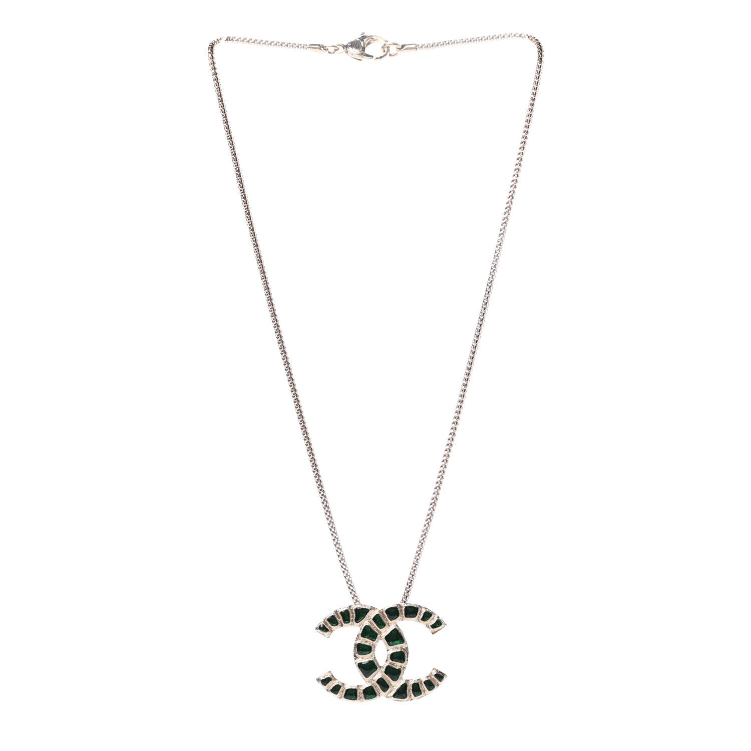 This is an authentic CHANEL Resin Along The Nile CC Pendant Necklace in Gold and Green. This stylish collar-length necklace is crafted in a gold-tone. It features a gold CC logo pendant with an inlay of green enamel.Follow this item for alerts. Chanel is a registered trademark of Chanel. FASHIONPHILE is not affiliated with Chanel.