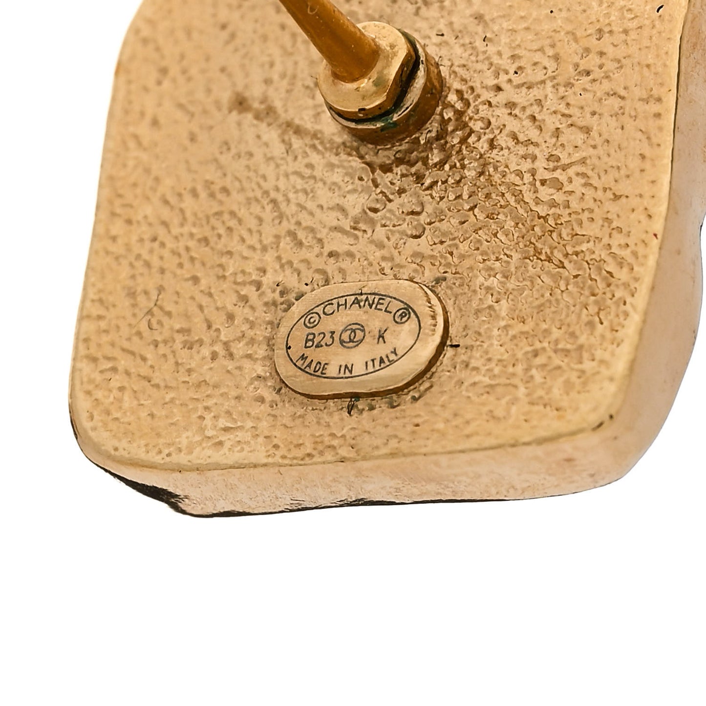 This is an authentic pair of CHANEL Resin CC Square Earrings in Gold and Pink. These earrings feature a square gold plaque with a gold CC logo in the center of a pink enamel background.Follow this item for alerts. Chanel is a registered trademark of Chanel. FASHIONPHILE is not affiliated with Chanel.