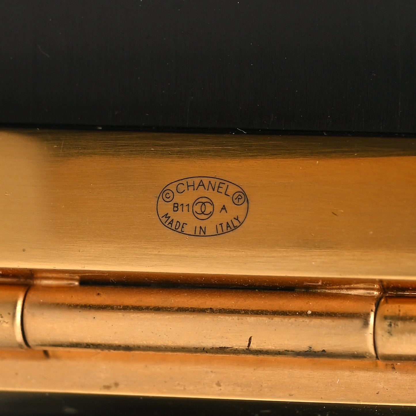 This is an authentic CHANEL Resin Glitter Gripoix CC Wide Cuff in Black. This stunning hinged black resin bracelet features square and baguette crystals in the Chanel CC logo.Follow this item for alerts. Chanel is a registered trademark of Chanel. FASHIONPHILE is not affiliated with Chanel.