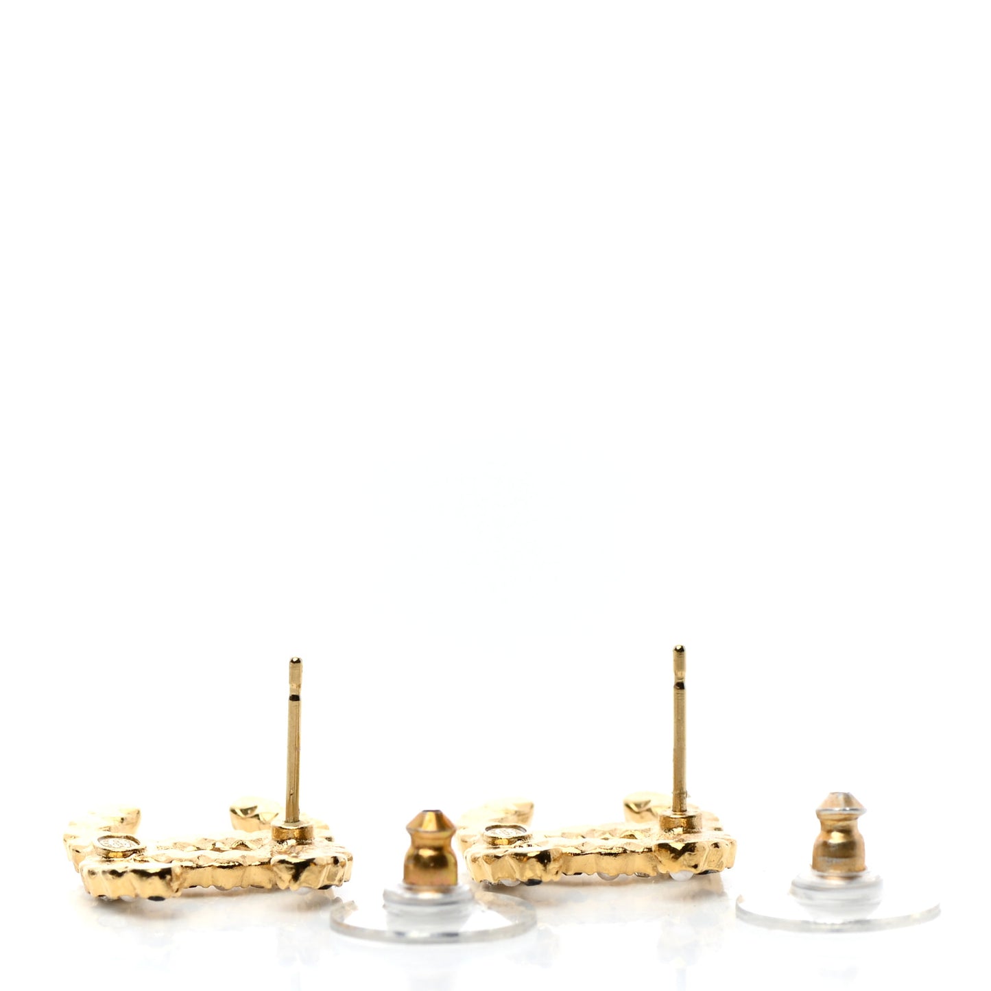 These are authentic CHANEL Resin Pearl Crystal CC Earrings in Gold and Black. These attractive earrings have a Chanel CC gold base with miniature faux pearls and crystals.Follow this item for alerts. Chanel is a registered trademark of Chanel. FASHIONPHILE is not affiliated with Chanel.