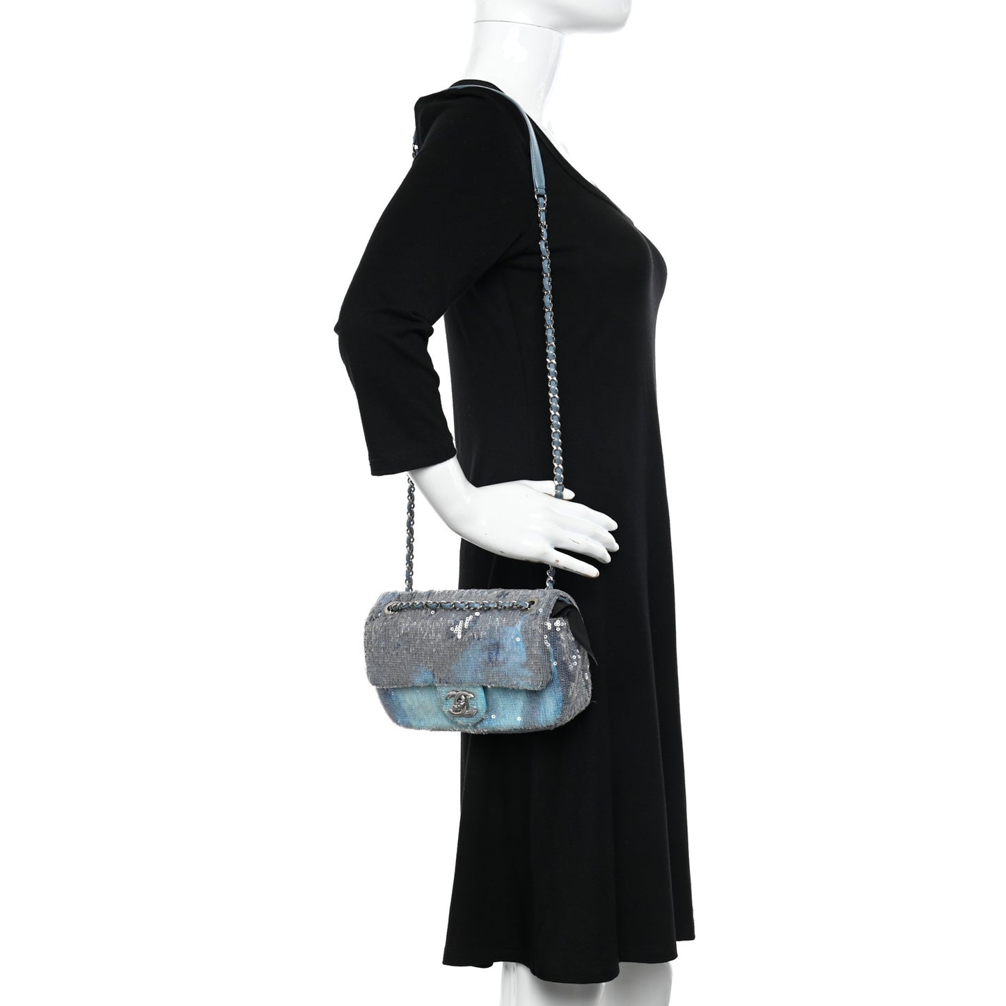Chanel/ Bags/ Shoulder Bags /Chanel Sequin Mini Waterfall Flap Light Blue