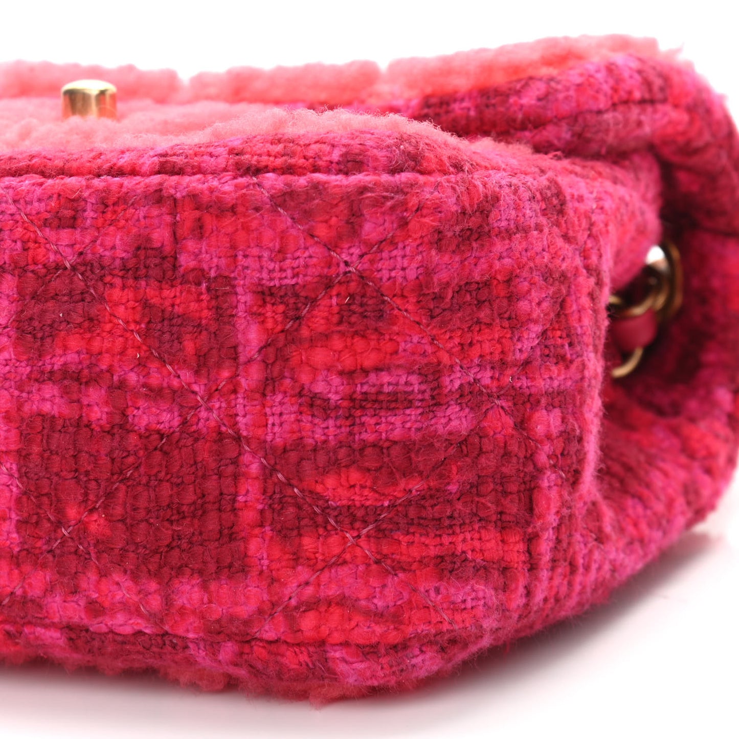 Shearling Tweed Quilted Mini Square Flap Bag Pink