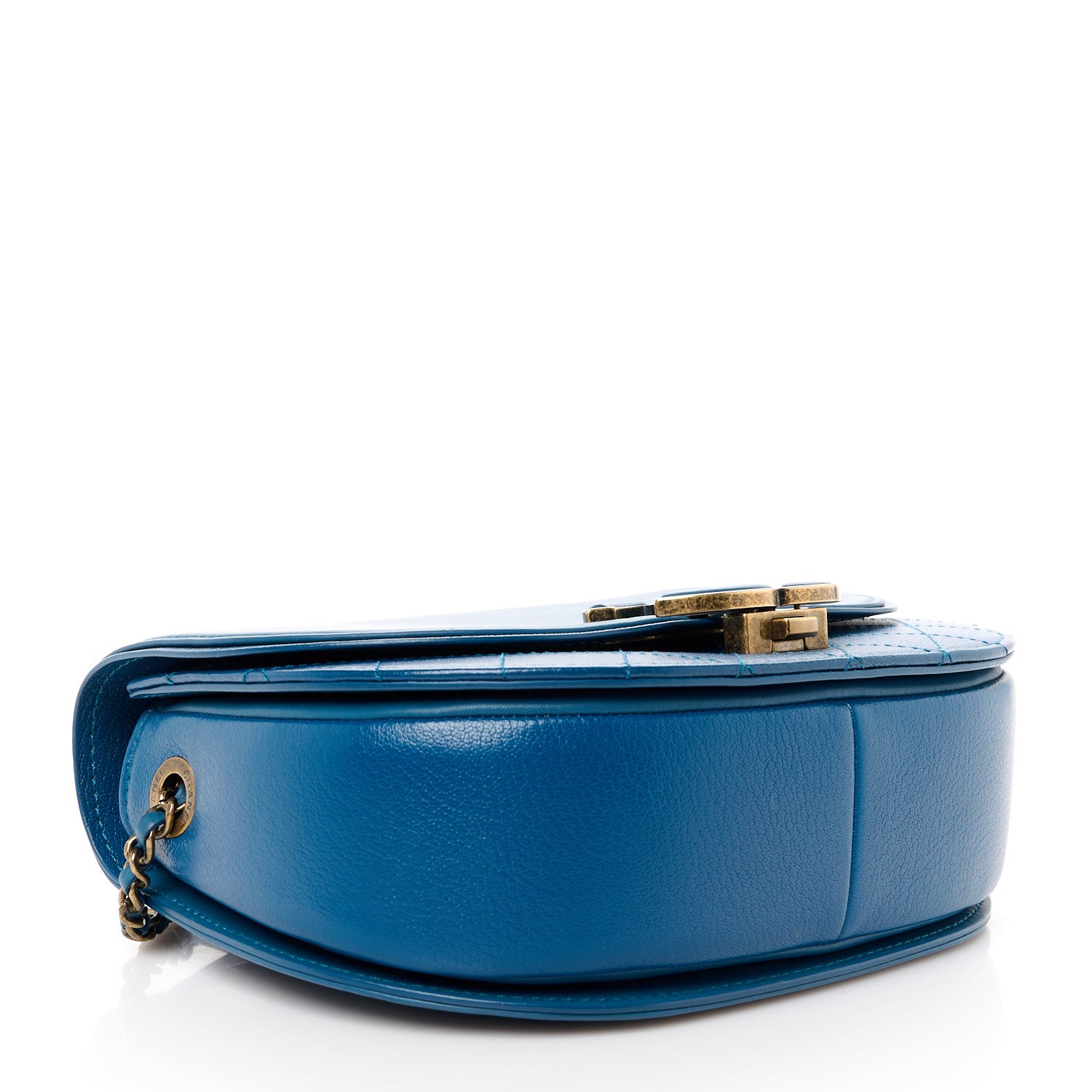 Shiny Calfskin Goatskin Quilted Medium Coco Curve Messenger Flap Navy