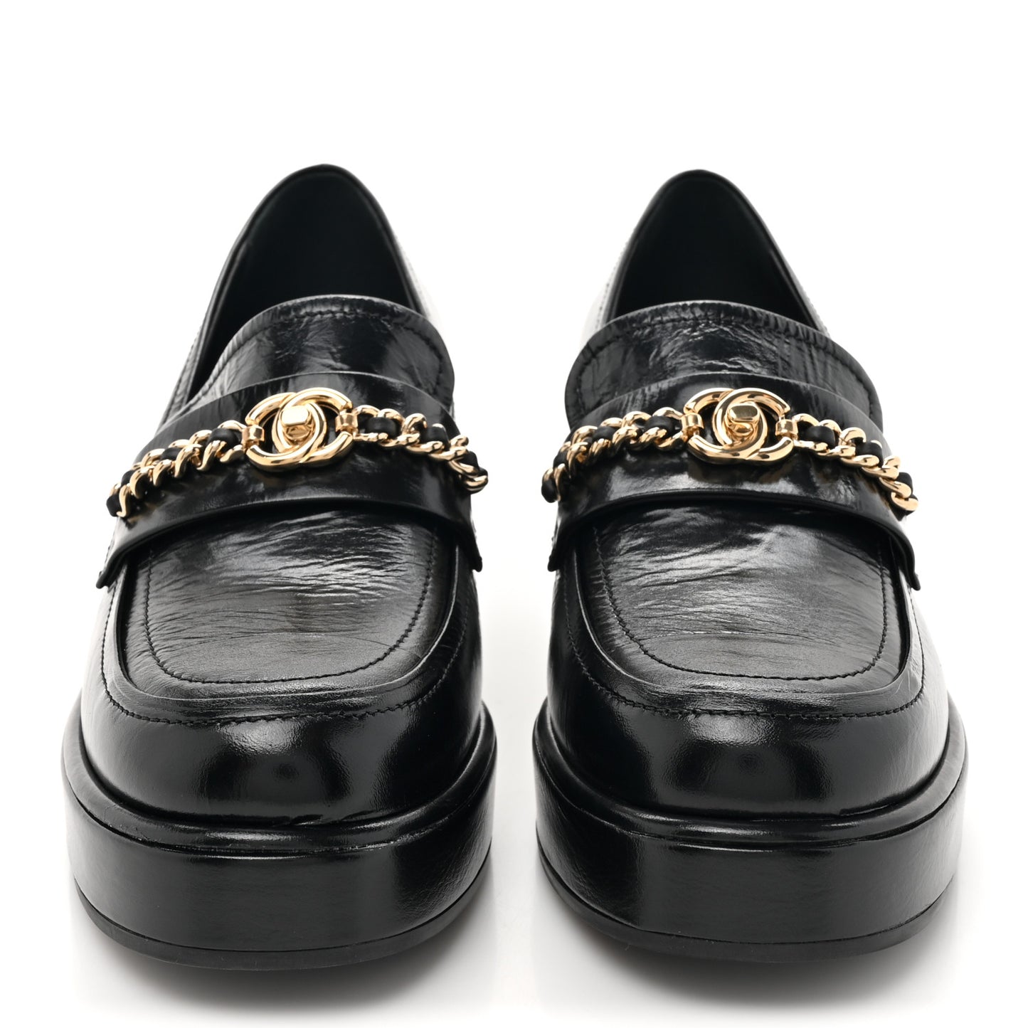 Chanel/ Accessories/ Shoes /Chanel Shiny Calfskin Logo Loafers 38 Black