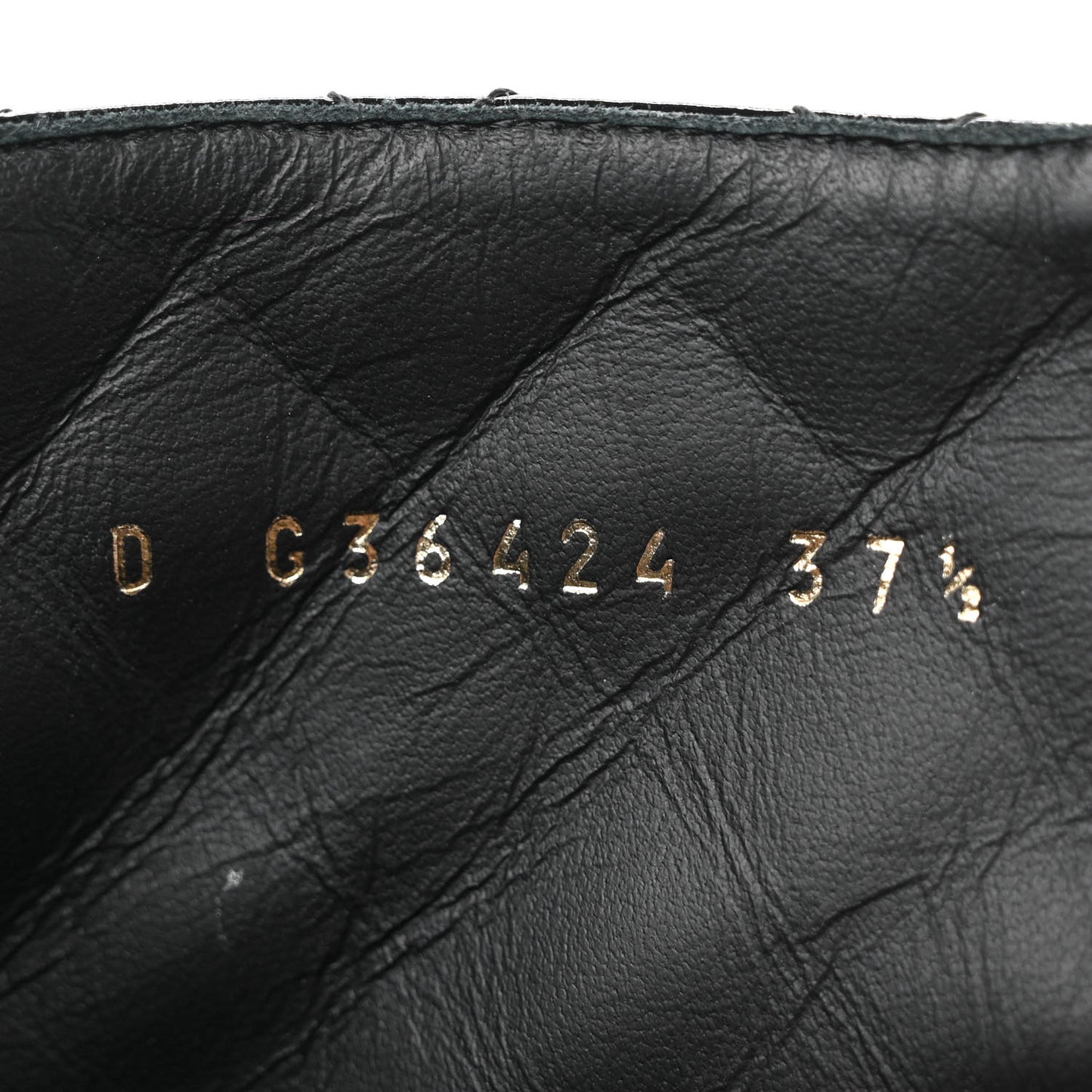 Shiny Calfskin Quilted Lace Up Combat Boots 37.5 Black