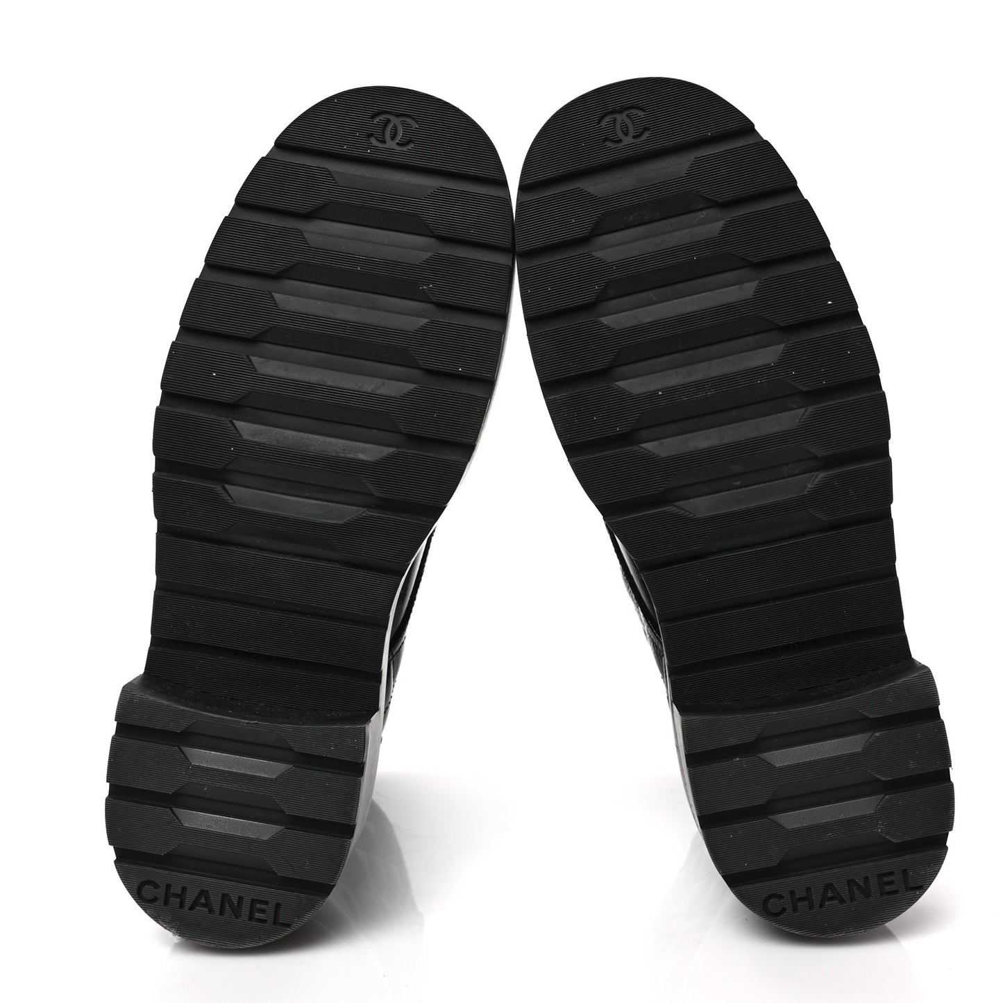 Chanel/ Accessories/ Shoes /Chanel Shiny Calfskin Quilted Lace Up Combat Boots 40.5 Black