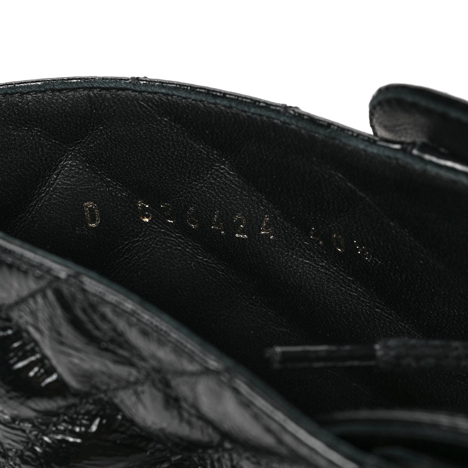 Shiny Calfskin Quilted Lace Up Combat Boots 40.5 Black