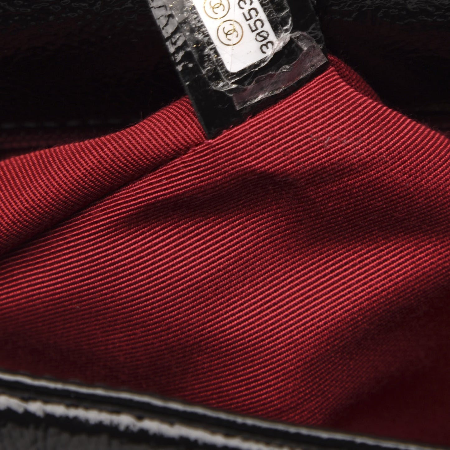 Shiny Crumpled Calfskin Quilted Medium 19 Flap Black