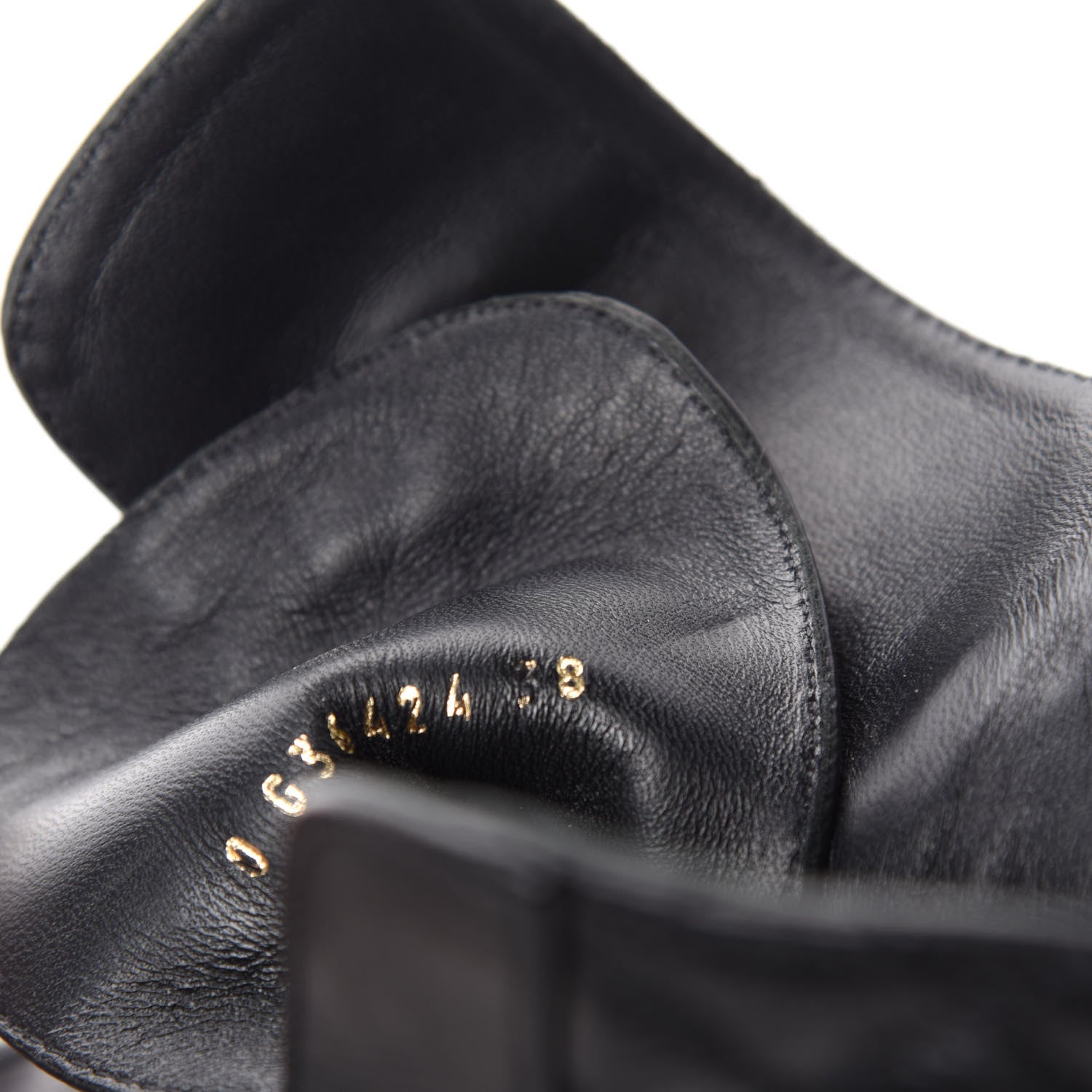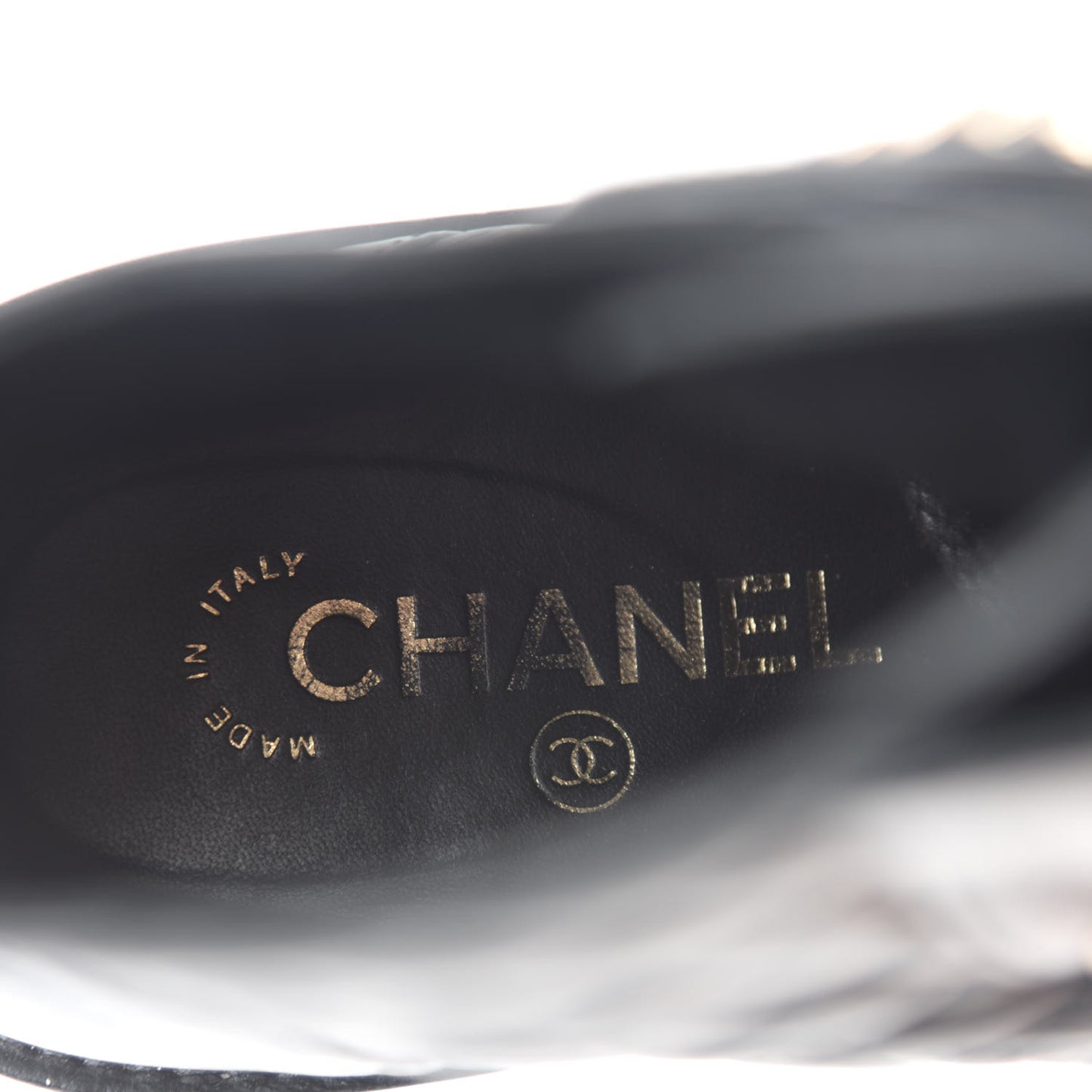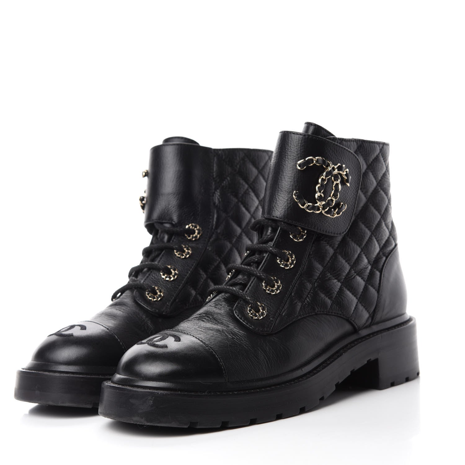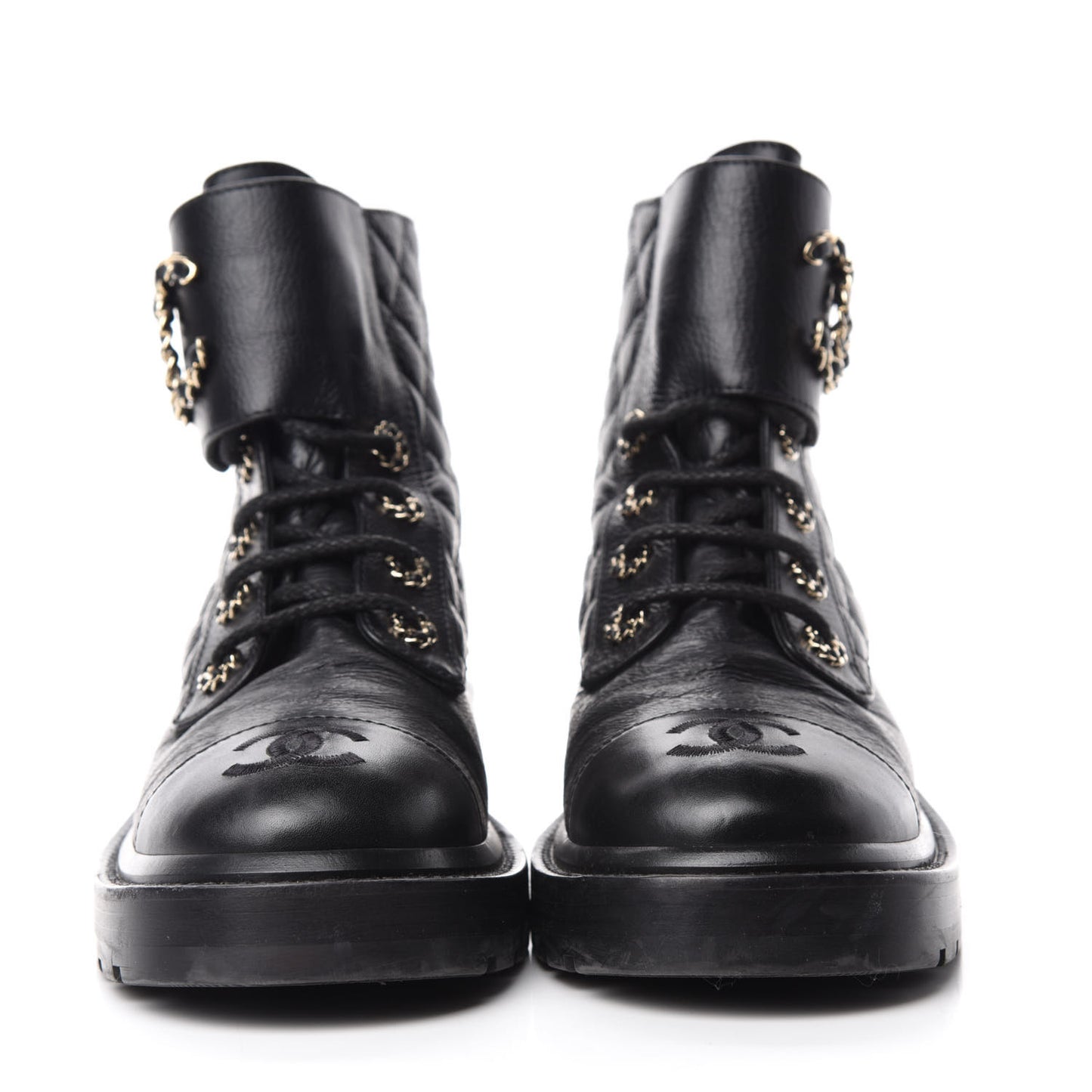 Chanel/ Accessories/ Shoes /Chanel Shiny Goatskin Calfskin Quilted Lace Up Combat Boots 38 Black