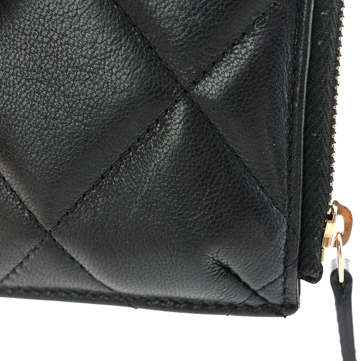 Shiny Goatskin Quilted Chanel 19 Phone and Card Holder Black