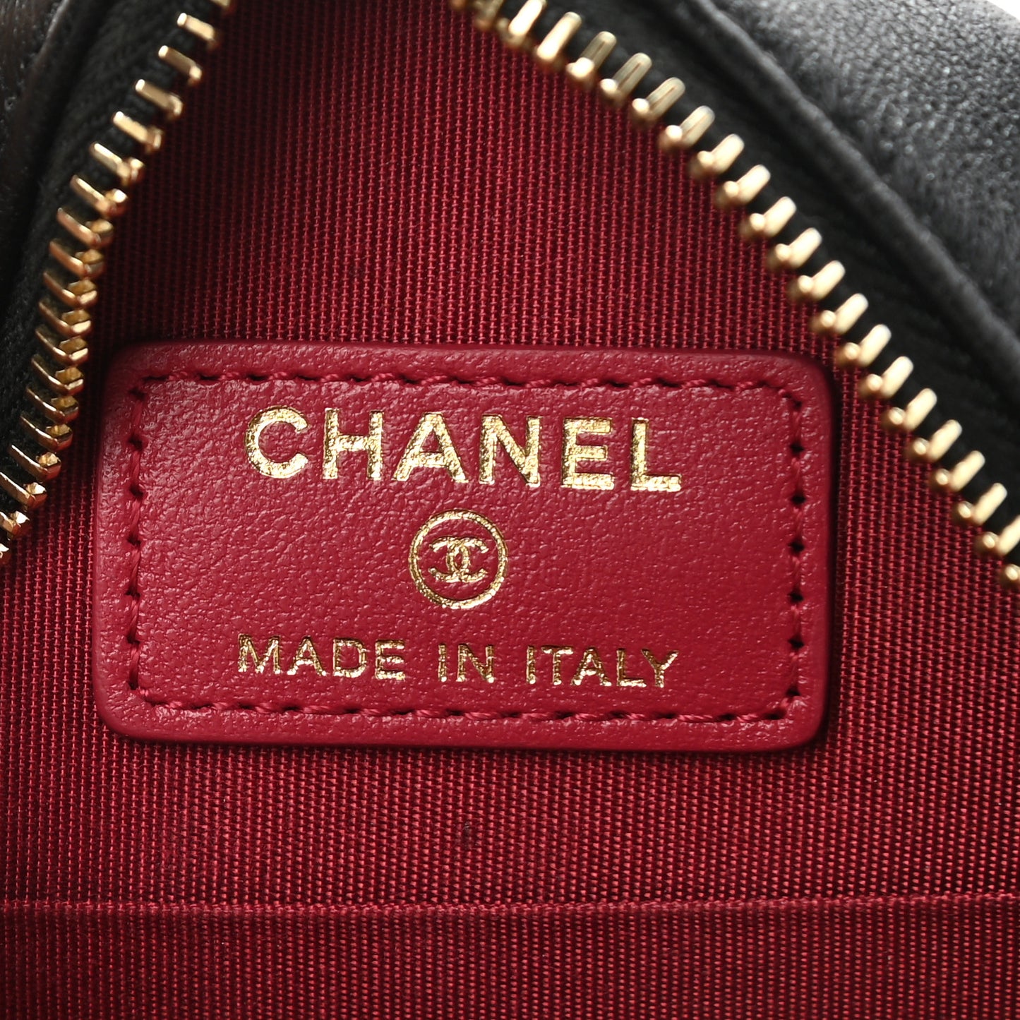 Shiny Goatskin Quilted Chanel 19 Round Clutch With Chain Black