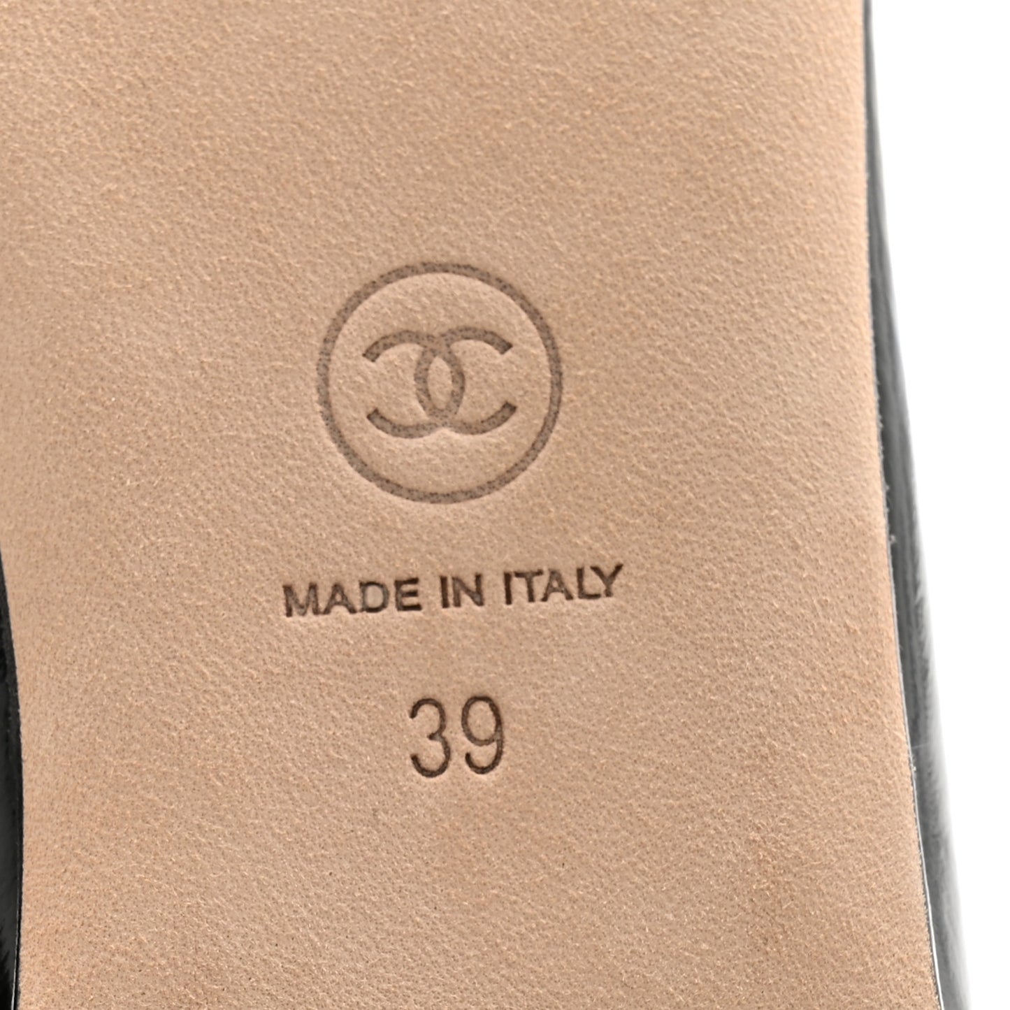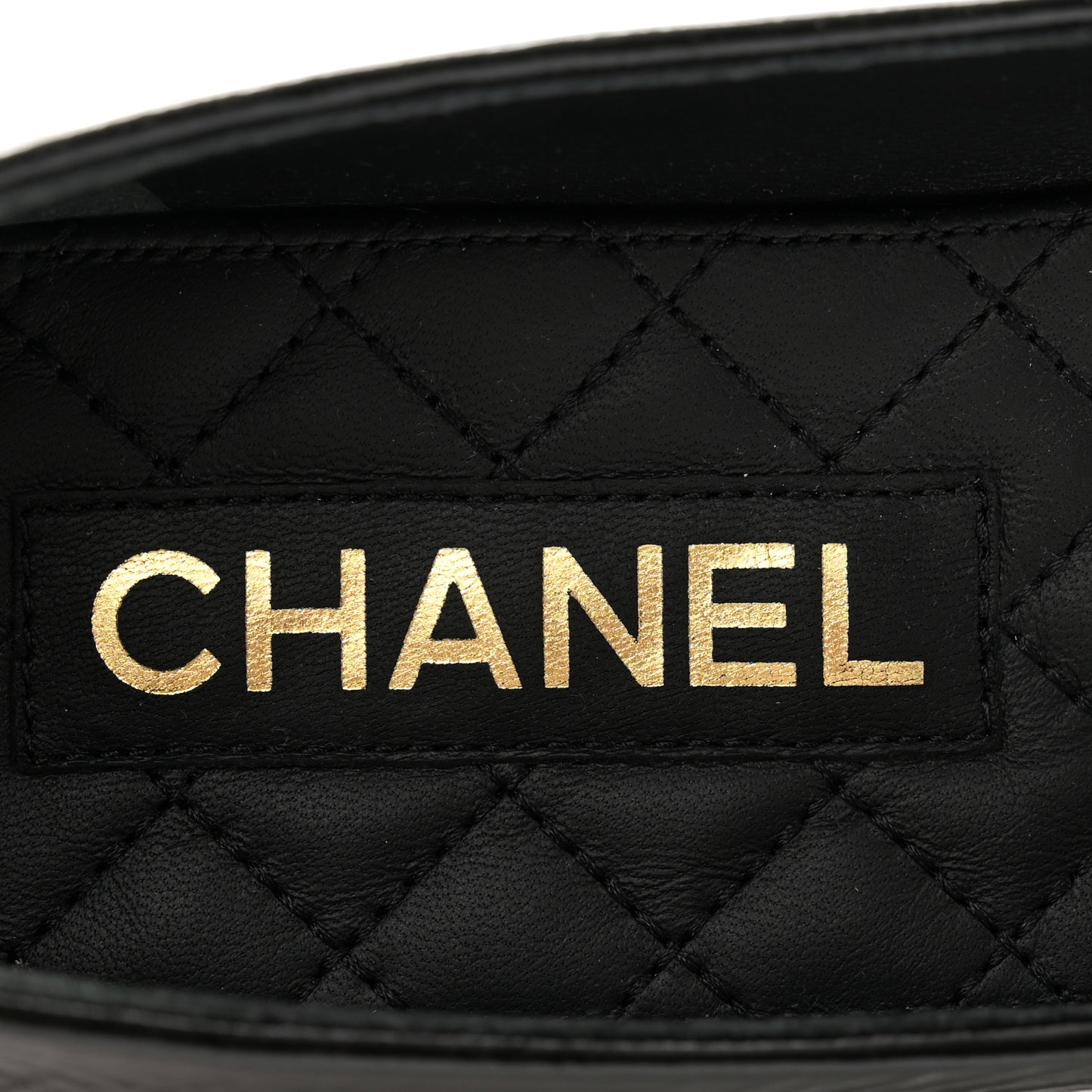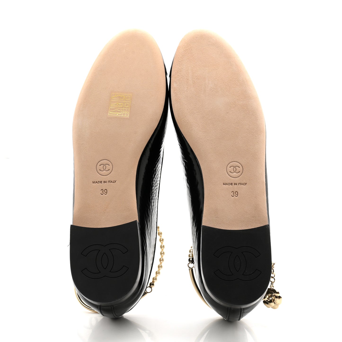 Chanel/ Accessories/ Shoes /Chanel Shiny Lambskin Pearl Cap Toe Ankle Chain Ballerina Flats 39 Black