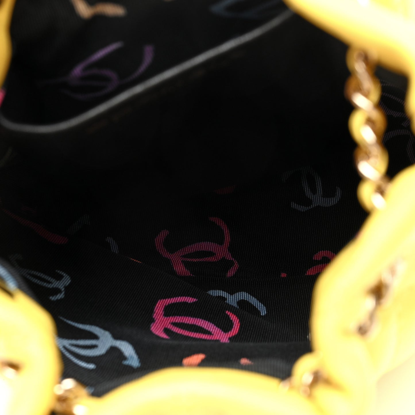 This is an authentic CHANEL Shiny Lambskin Quilted Drawstring Backpack in Yellow. This backpack is crafted of diamond quilted shiny lambskin leather in yellow. It features leather-threaded polished light gold chain straps with a Chanel enamel hardware logo, and a matching top cinch strap with an enamel CC logo push-button adjuster. This opens the bag to a black fabric interior with multicolored CC logos and a large leather smartphone pocket.Follow this item for alerts. Chanel is a registered trademark of Chanel. FASHIONPHILE is not affiliated with Chanel.