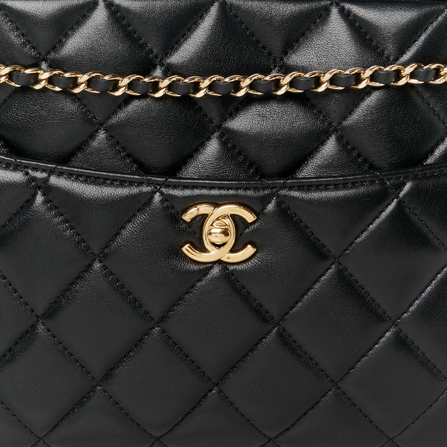 This is an authentic CHANEL Lambskin Quilted Medium Camera Case in Black. This versatile handbag is crafted of shiny black lambskin leather with diamond quilting. It features a magnetic rear pocket, a front pocket with gold-toned CC turn lock, and leather-threaded chain straps. The top zipper opens to a burgundy fabric interior with a zipper pocket and leather patch pocket.Follow this item for alerts. Chanel is a registered trademark of Chanel. FASHIONPHILE is not affiliated with Chanel.