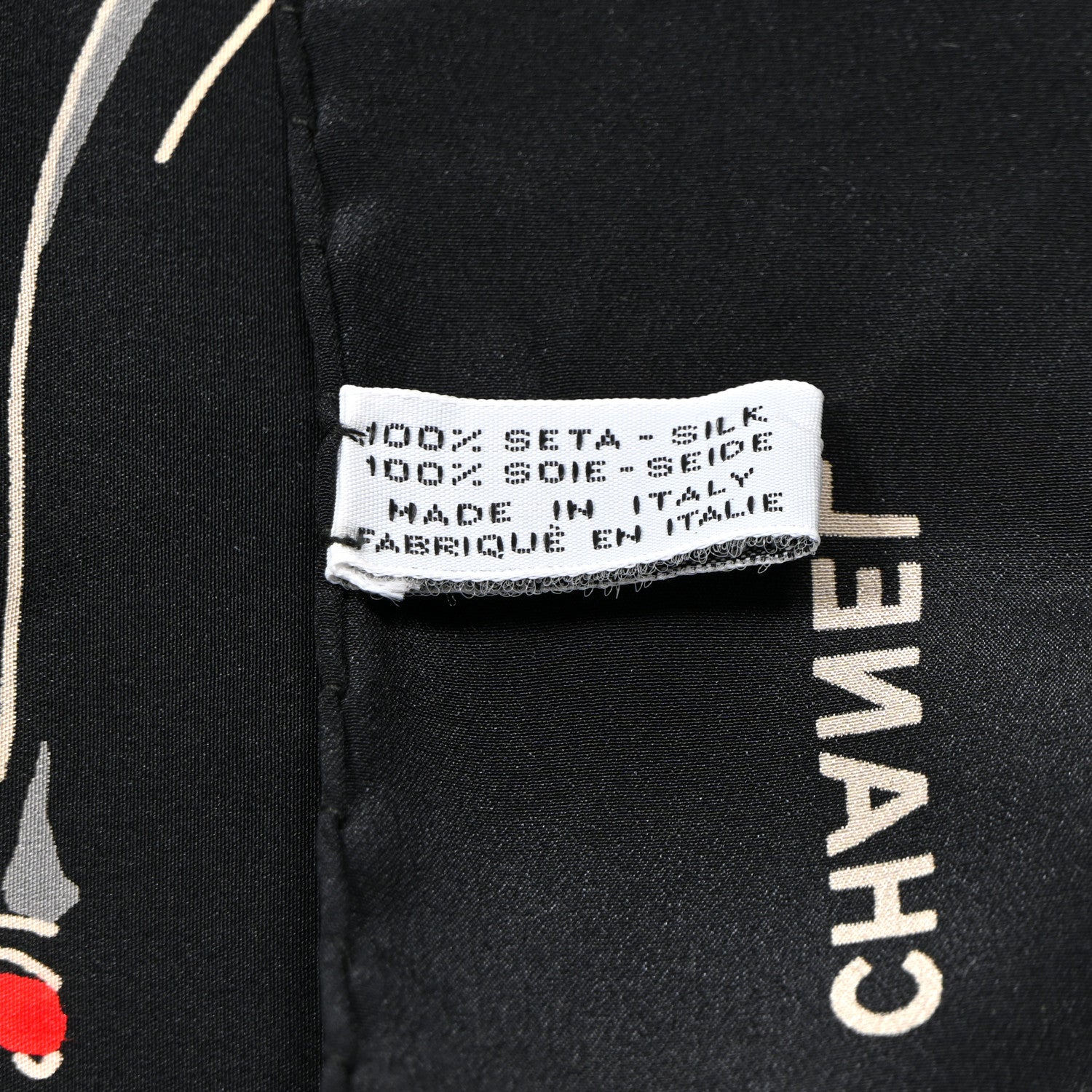 This is an authentic CHANEL Silk CC Square Scarf in Black and Multicolor. The scarf is crafted of 100% silk and features black, red, and green.Follow this item for alerts. Chanel is a registered trademark of Chanel. FASHIONPHILE is not affiliated with Chanel.