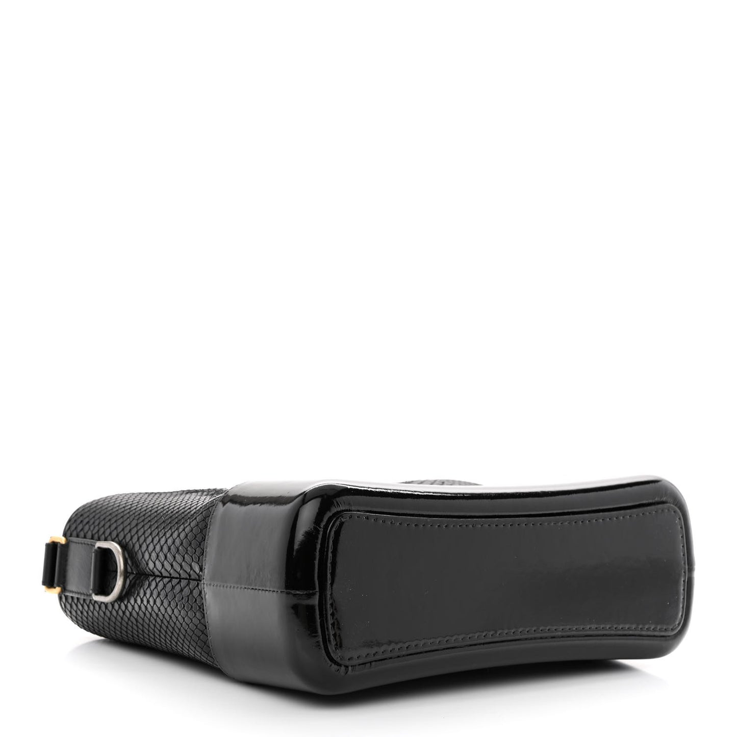 This is an authentic CHANEL Snakeskin Medium Gabrielle Hobo in Black. This stunning shoulder bag is superbly crafted of snakeskin with a smooth patent leather base, and features a leather threaded ruthenium, polished gold and silver chain link shoulder straps. The top zipper opens to a black leather interior with zipper and patch pockets.Follow this item for alerts. Chanel is a registered trademark of Chanel. FASHIONPHILE is not affiliated with Chanel.