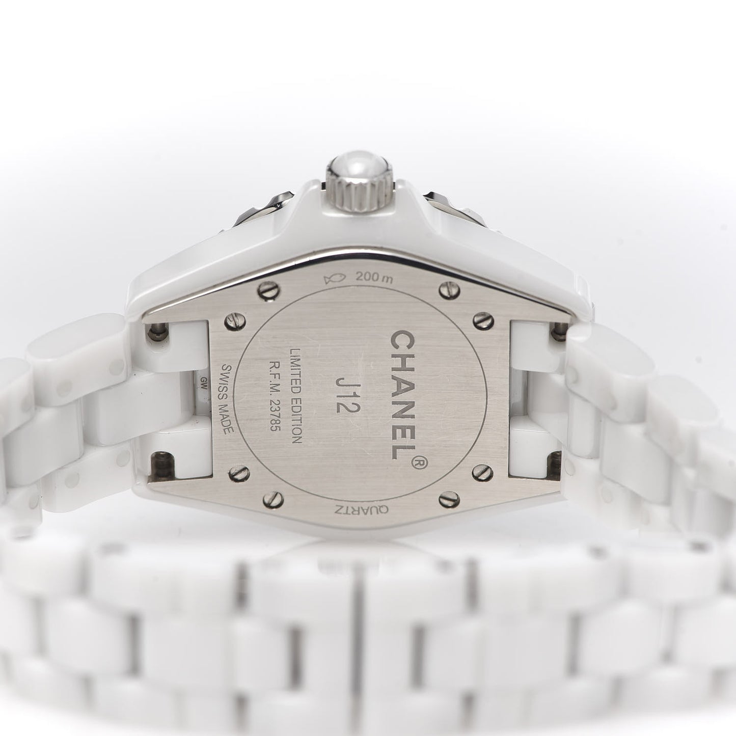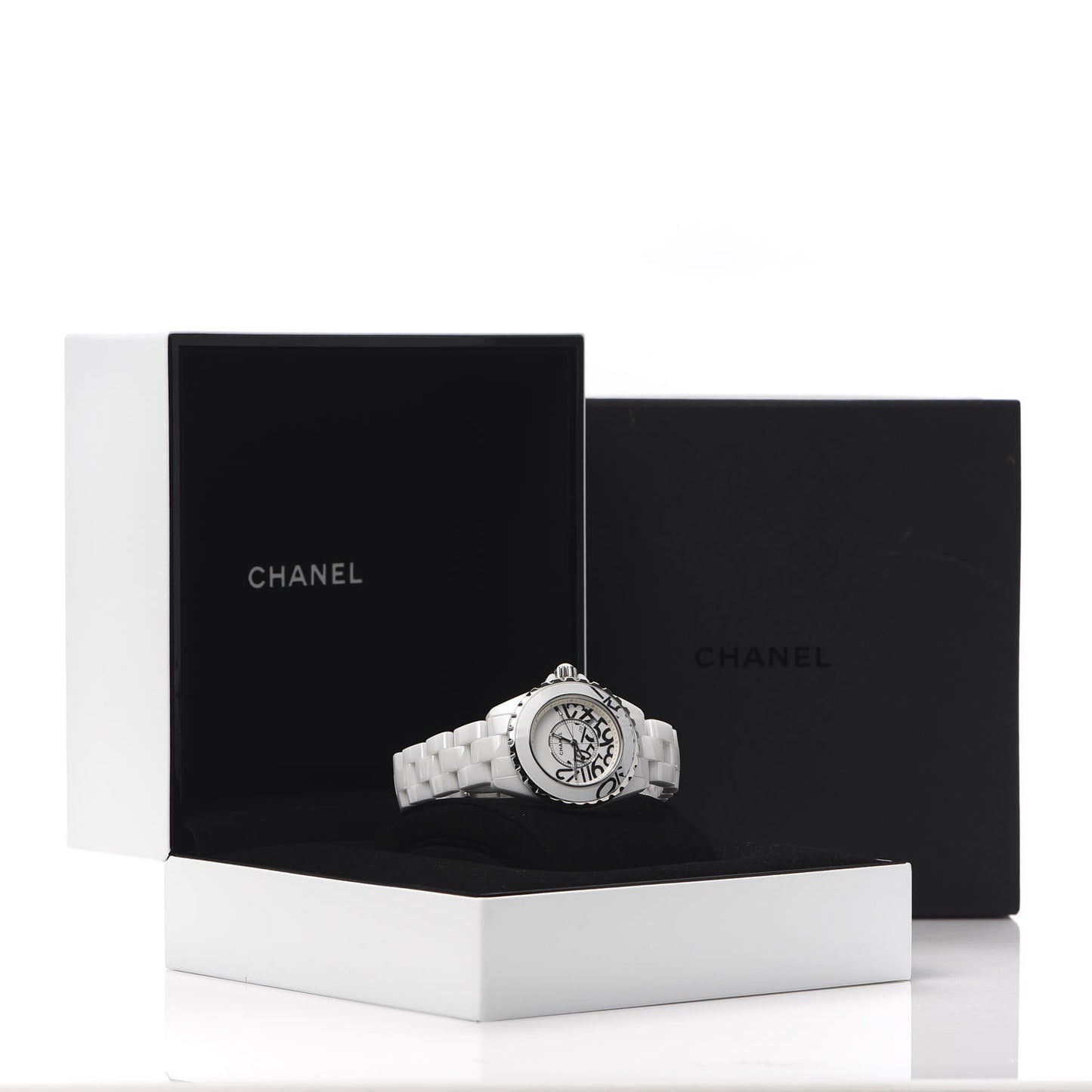 This is an authentic CHANEL Stainless Steel Ceramic 33mm J12 Limited Edition Graffiti Quartz Watch White. The watch is crafted of stainless steel and white ceramic, and features a white dial, silver hands and hour markers, sapphire crystal, a ceramic link bracelet, and a quartz movement. The watch is Chanel's 17th anniversary limited edition model.Follow this item for alerts. Chanel is a registered trademark of Chanel. FASHIONPHILE is not affiliated with Chanel.