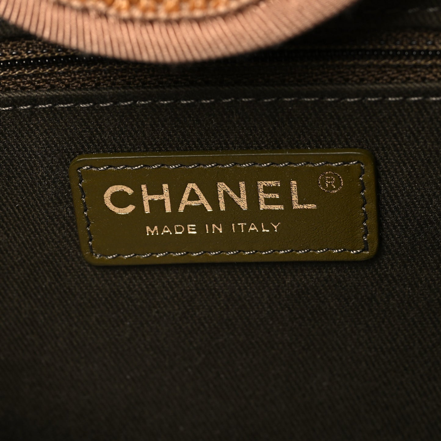 This is an authentic CHANEL Straw Raffia Calfskin Striped Medium Deauville Tote in Khaki, Beige and Navy Blue. This woven tote is crafted of fine raffia with an iconic Chanel logo on the front in green, beige, and blue. The bag features canvas threaded gold chain shoulder straps, brown leather handles, canvas trim, and an open top. The dark brown fabric interior features zipper and patch pockets.Follow this item for alerts. Chanel is a registered trademark of Chanel. FASHIONPHILE is not affiliated with Chanel.