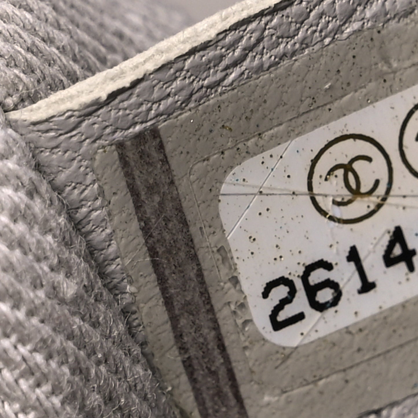 This is an authentic CHANEL Striped Canvas Medium Deauville Tote in Grey This lovely tote is crafted of fine gray canvas, with a striped Chanel advertisement logo on the front. The bag features matching striped side panels, smooth black leather top handles, and grey fabric-threaded polished silver chain link shoulder straps. The top is open to a spacious beige fabric interior with zipper and patch pockets.Follow this item for alerts. Chanel is a registered trademark of Chanel. FASHIONPHILE is not affiliated with Chanel.
