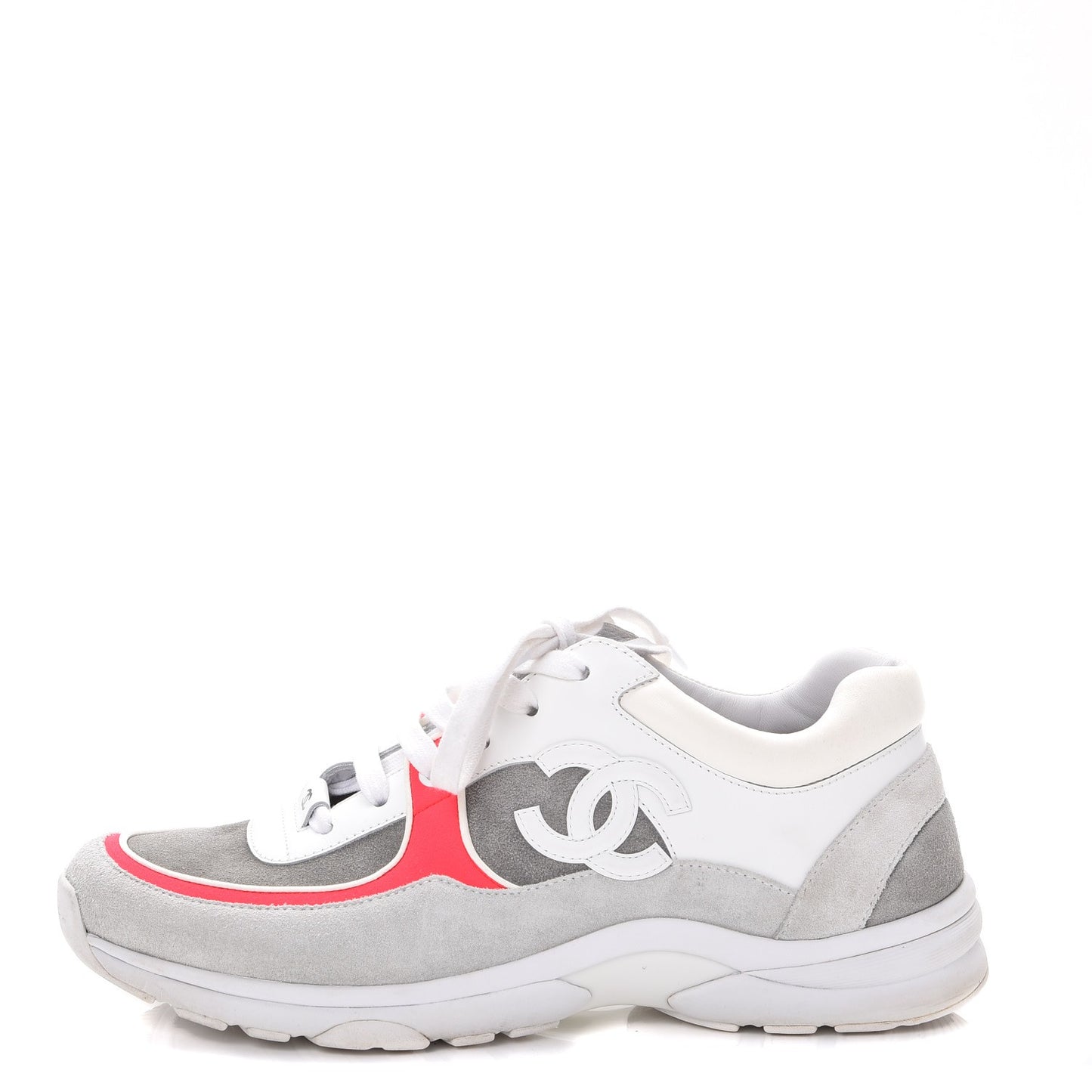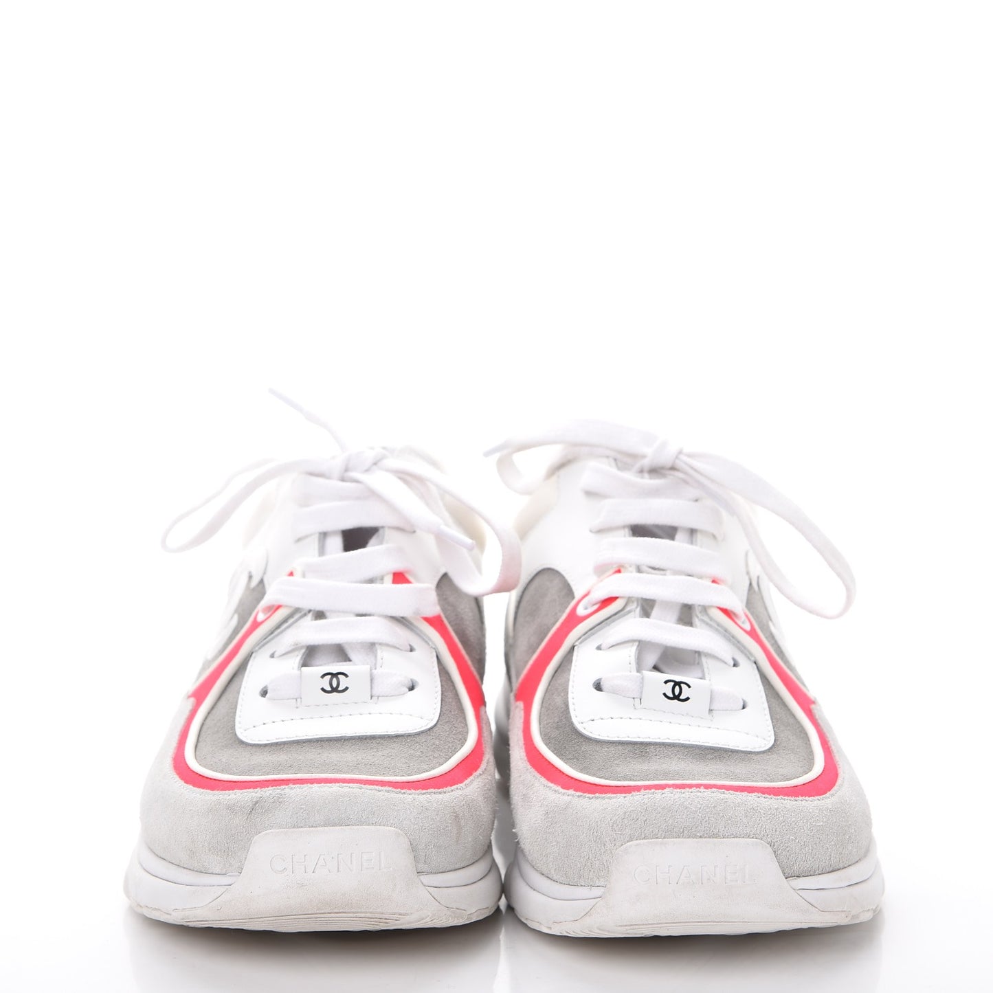 Chanel/ Accessories/ Shoes /Chanel Suede Calfskin CC Sneakers 40 White Grey Pink