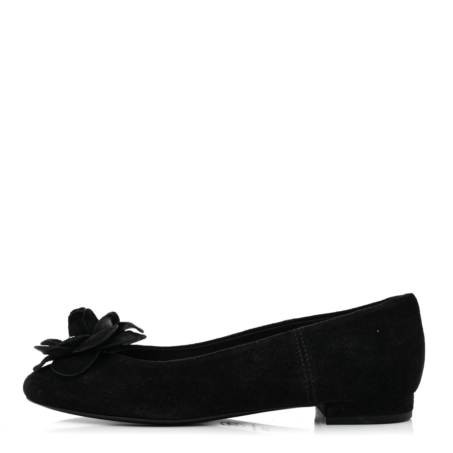 Suede Camellia CC Ballerina Flat 36.5 Black