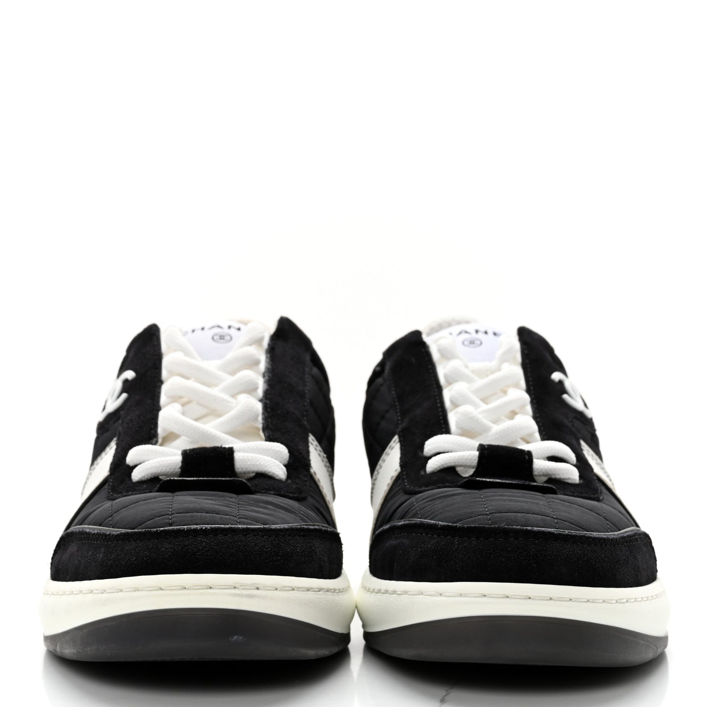 Chanel/ Accessories/ Shoes /Chanel Suede Fabric Calfskin Womens CC Sneakers 35.5 Black White