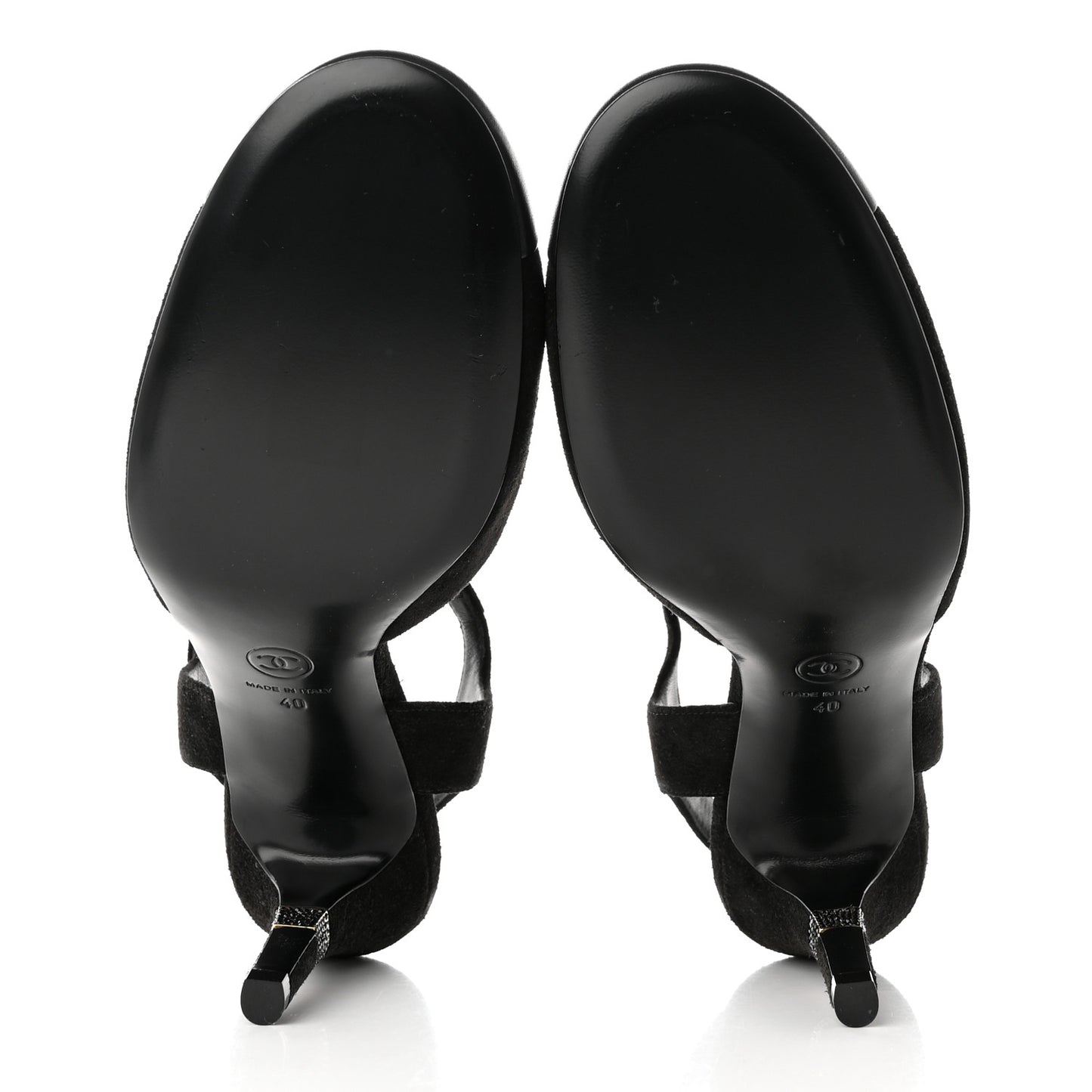 Chanel/ Accessories/ Shoes /Chanel Suede Lambskin Cap Toe Crystal Slingback Pumps 40 Black