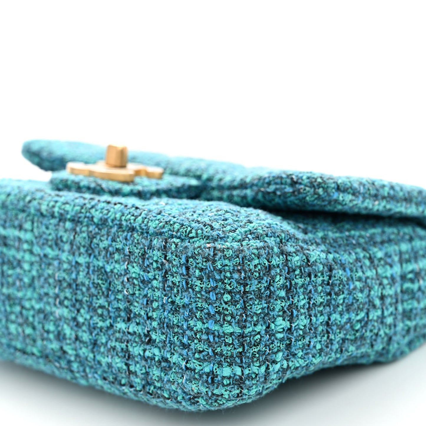 Chanel/ Bags/ Shoulder Bags /Chanel Tweed Enamel Quilted Pending CC Mini Square Flap Blue Green