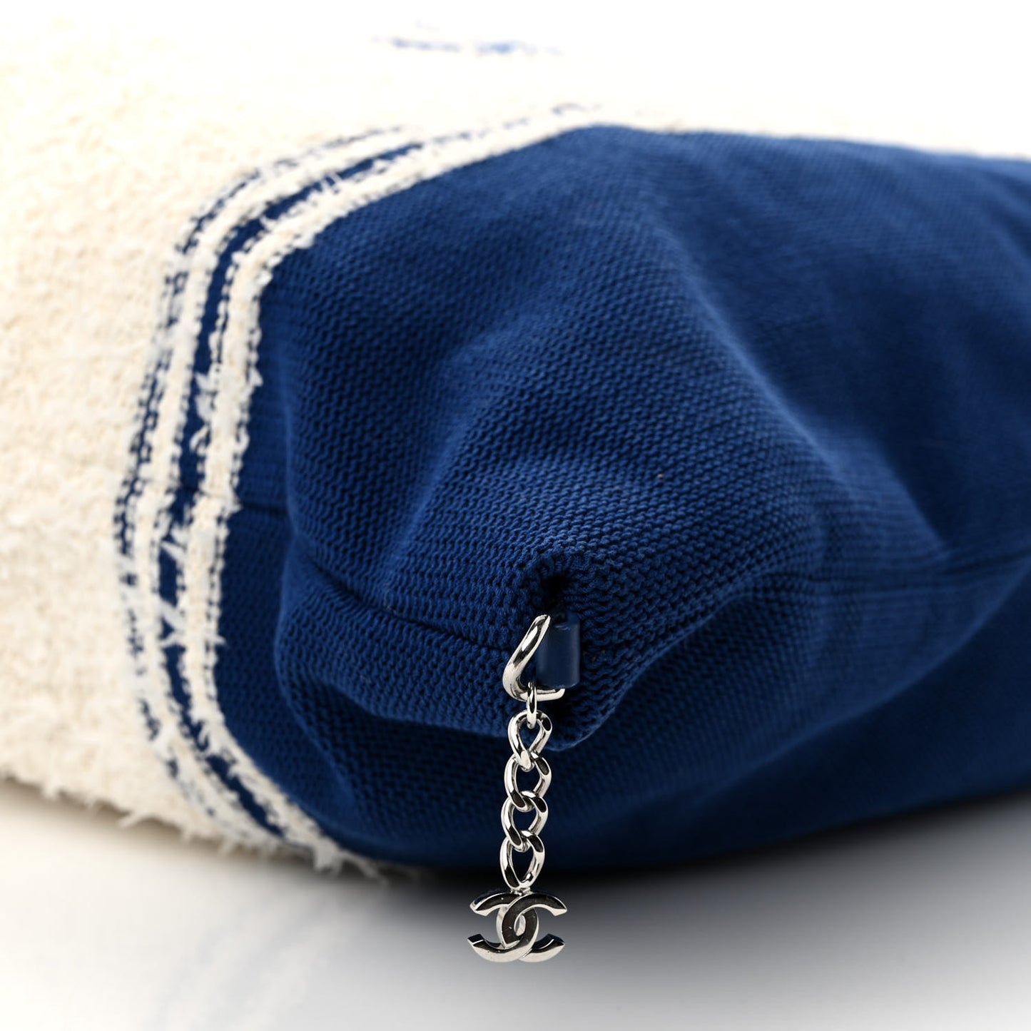 Tweed Fabric Deauville Biarritz Tote White Navy