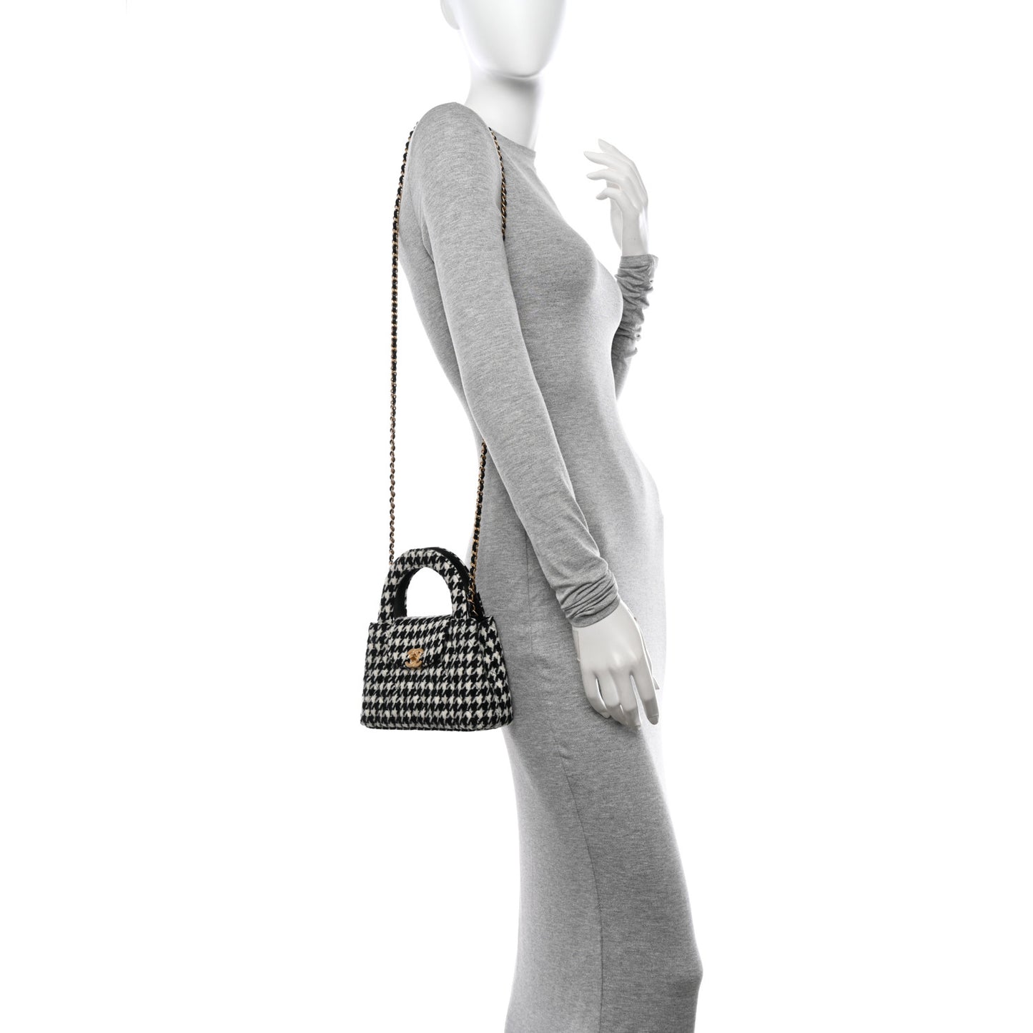 Chanel/ Bags/ Shoulder Bags /Chanel Tweed Houndstooth Quilted Nano Kelly Shopper Black White