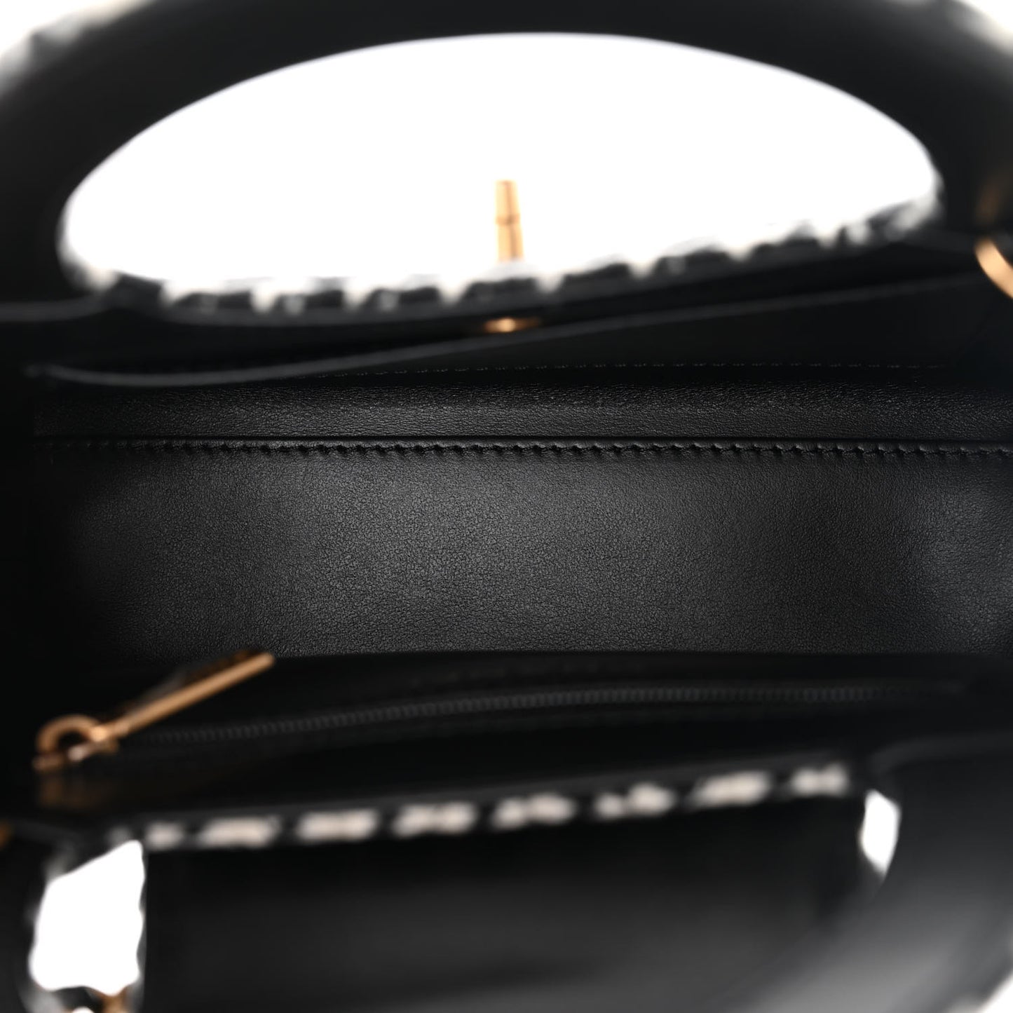 Tweed Houndstooth Quilted Nano Kelly Shopper Black White