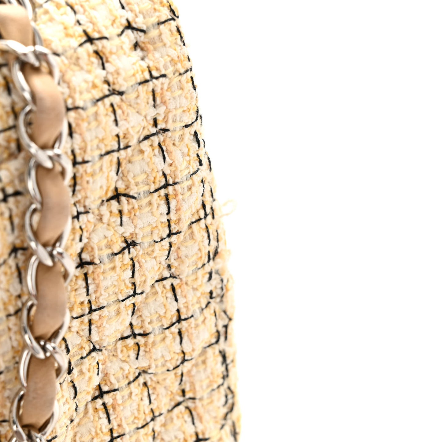 This is an authentic CHANEL Tweed Quilted Medium Double Flap in Beige Multicolor. This stylish shoulder bag is crafted of diamond quilted tweed in beige, white, and black. The bag features polished gold chain link leather threaded shoulder straps and a polished gold Chanel CC turn lock that opens the facing flap to a beige leather interior with pockets.Follow this item for alerts. Chanel is a registered trademark of Chanel. FASHIONPHILE is not affiliated with Chanel.