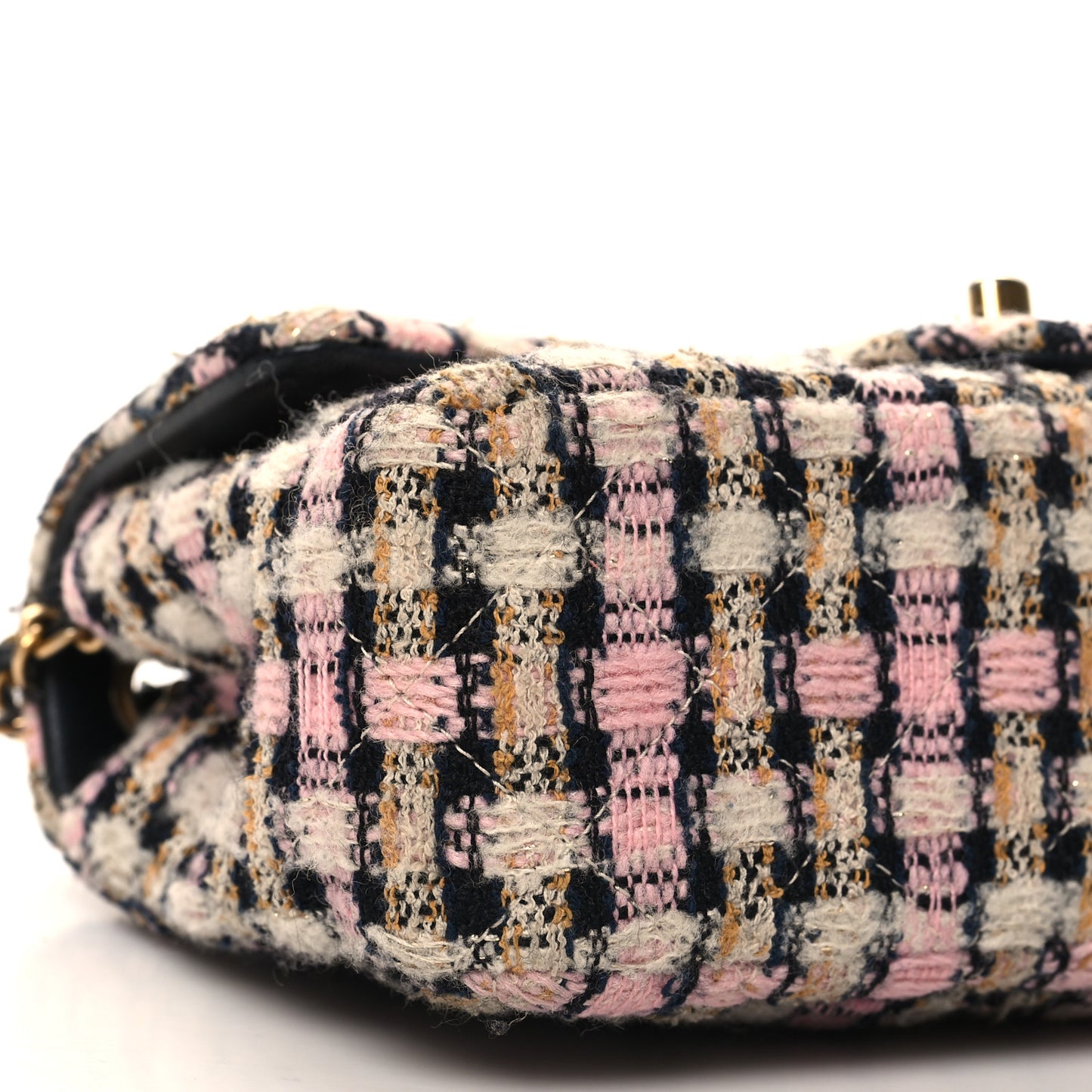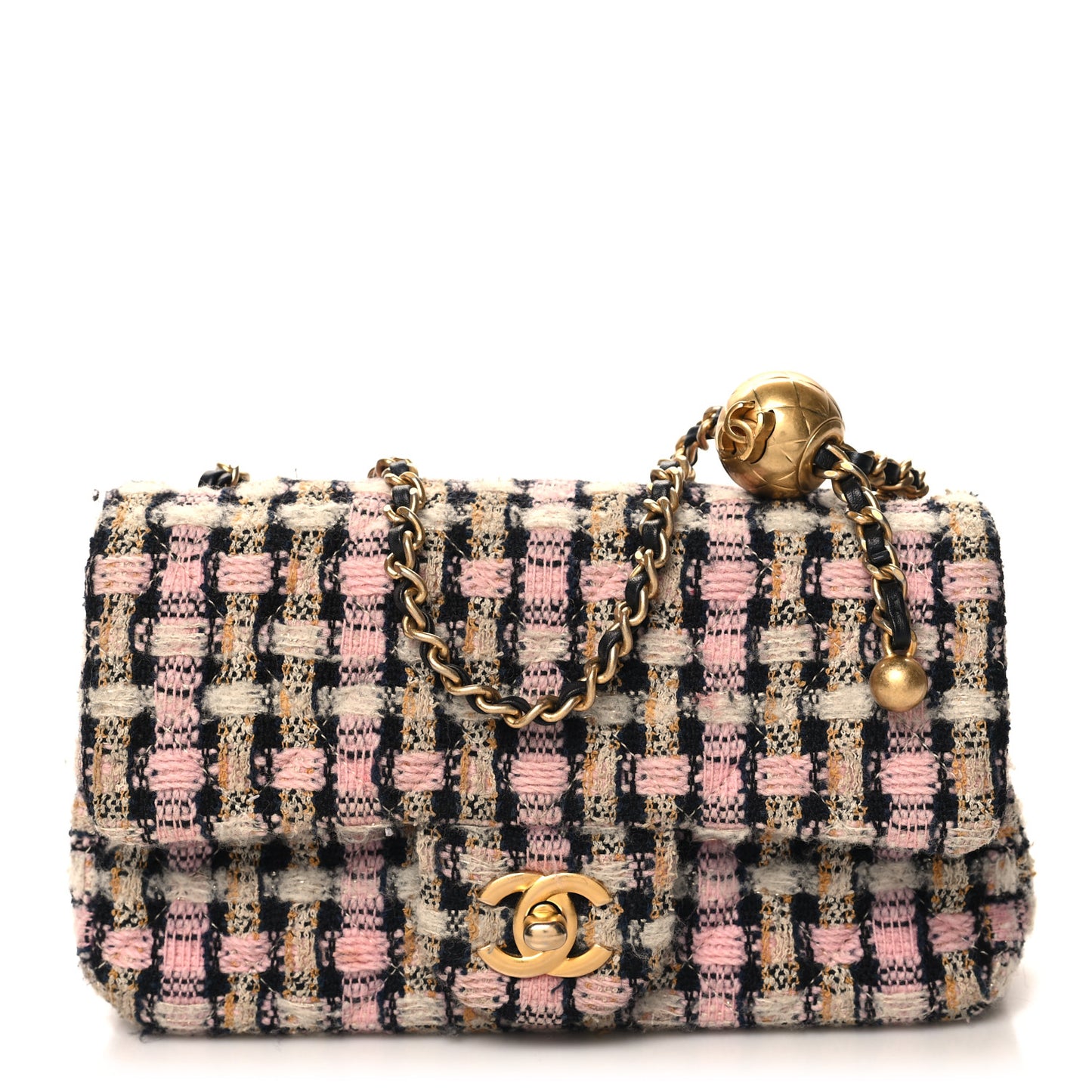 Chanel/ Bags/ Shoulder Bags /Chanel Tweed Quilted Mini Rectangular Pearl Crush Flap Pink Multicolor