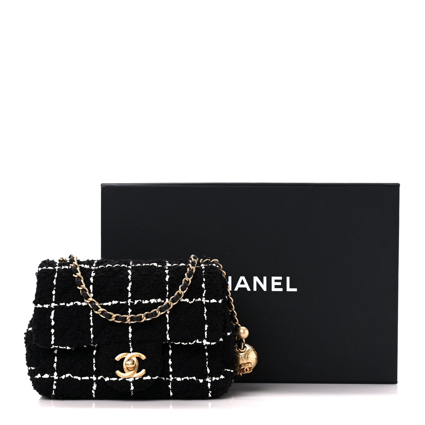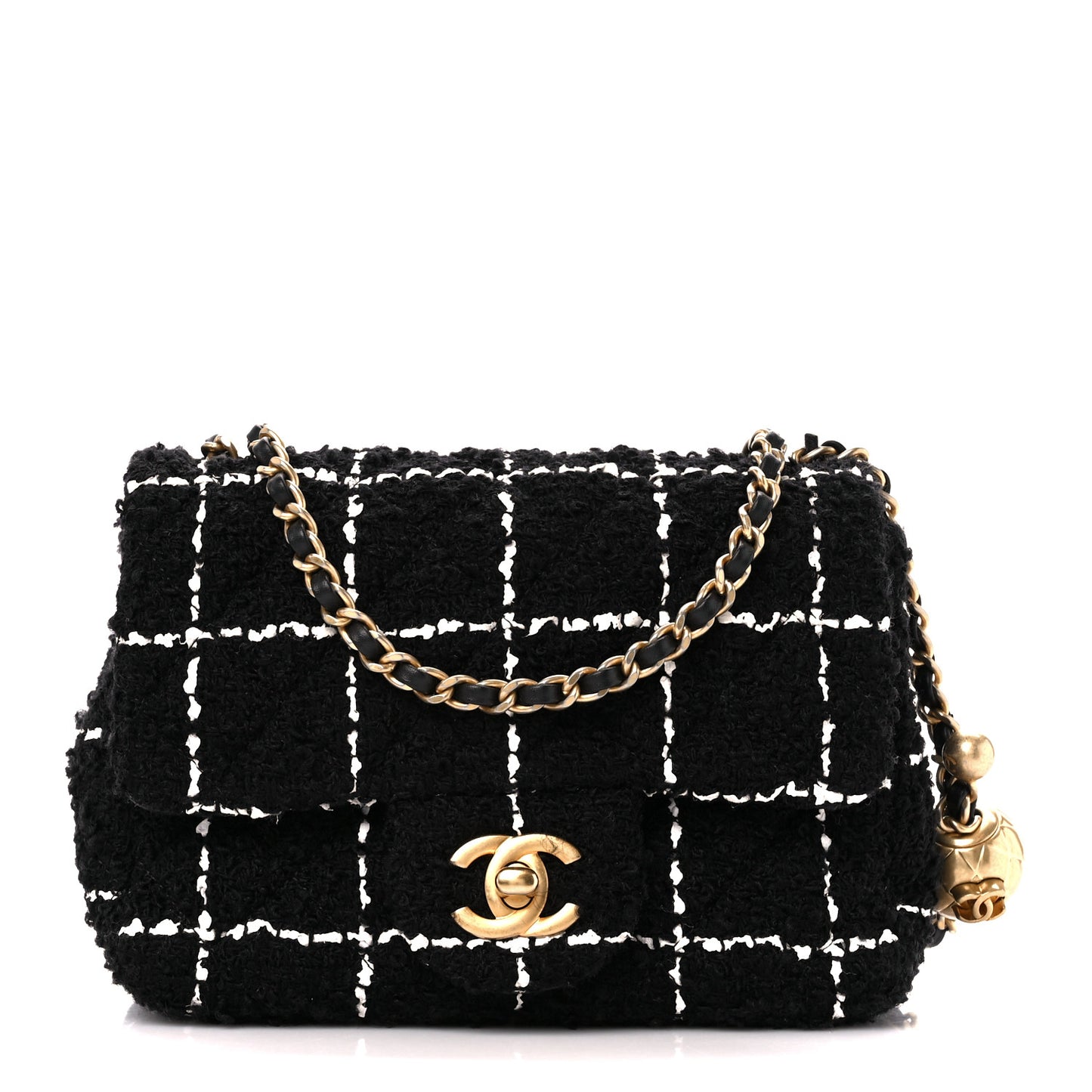 Chanel/ Bags/ Shoulder Bags /Chanel Tweed Quilted Mini Square Pearl Crush Flap Black