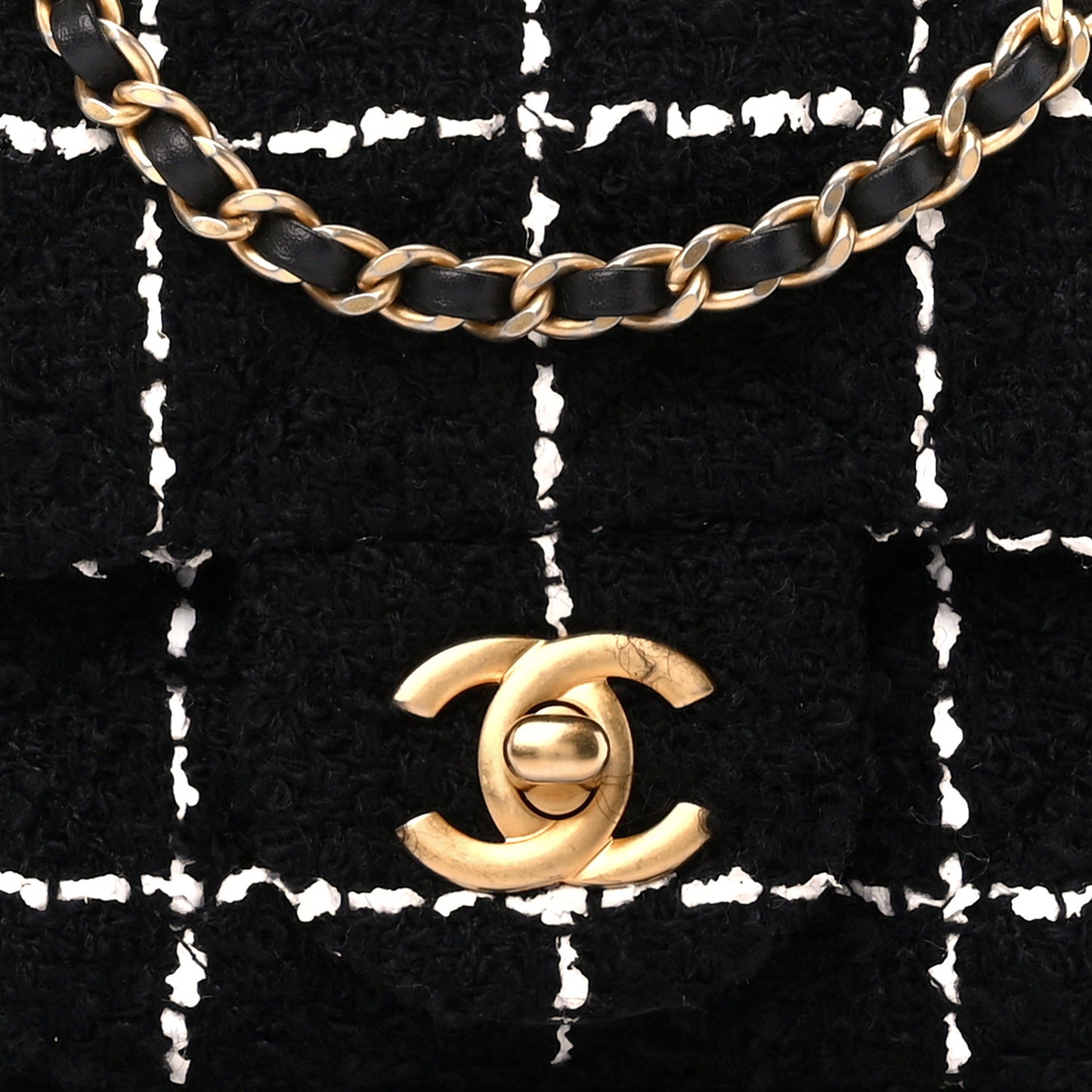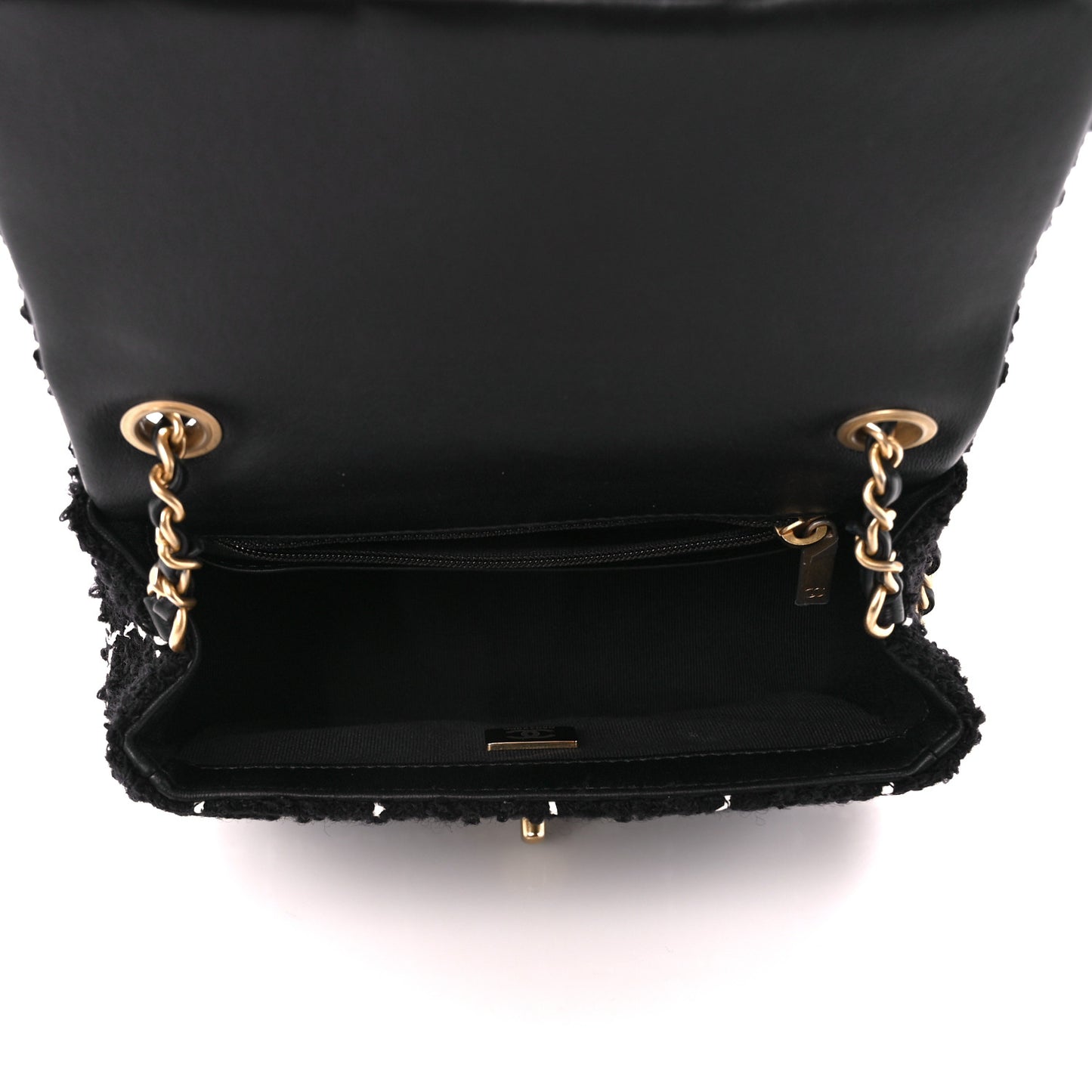 Tweed Quilted Mini Square Pearl Crush Flap Black